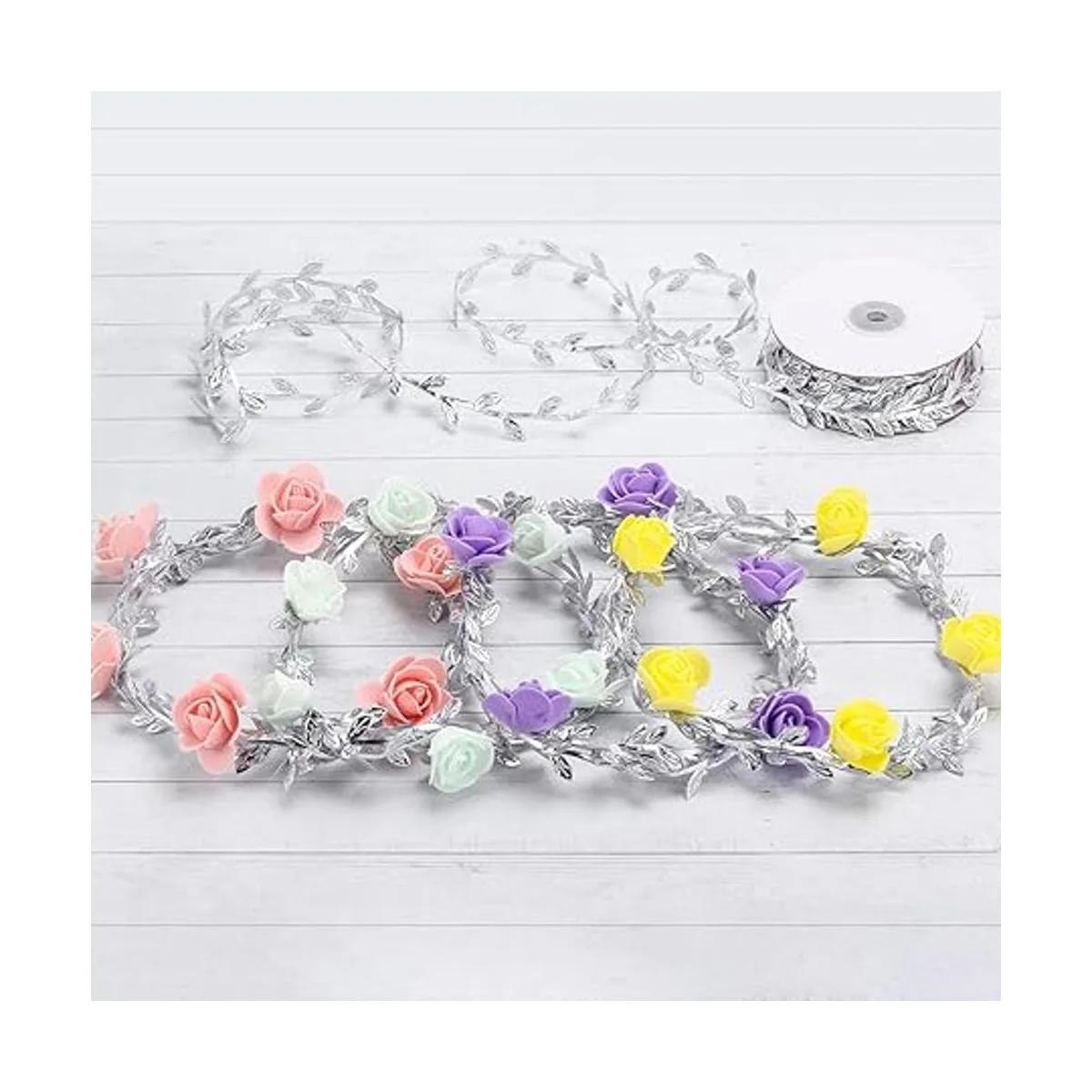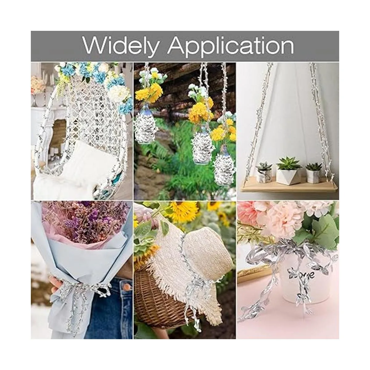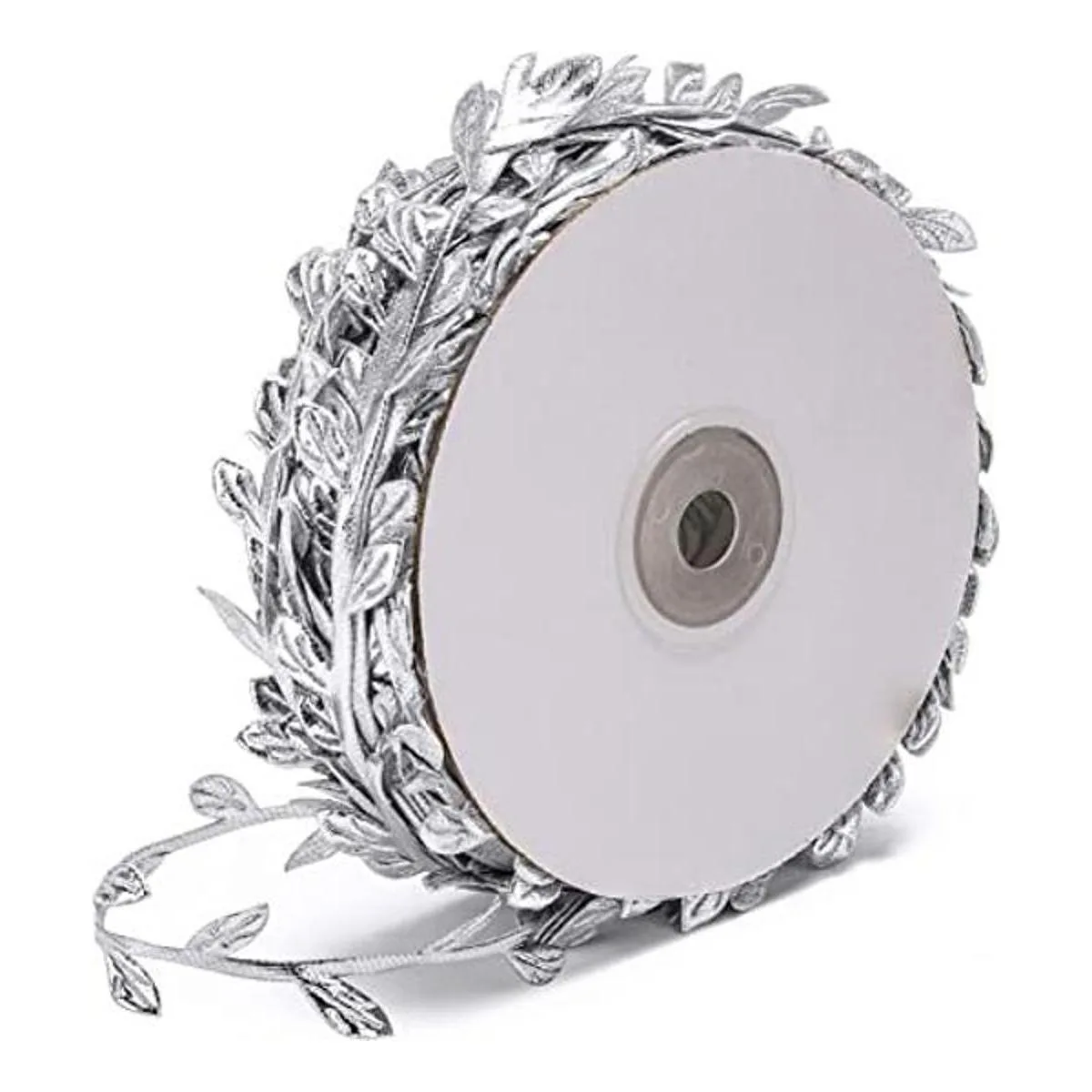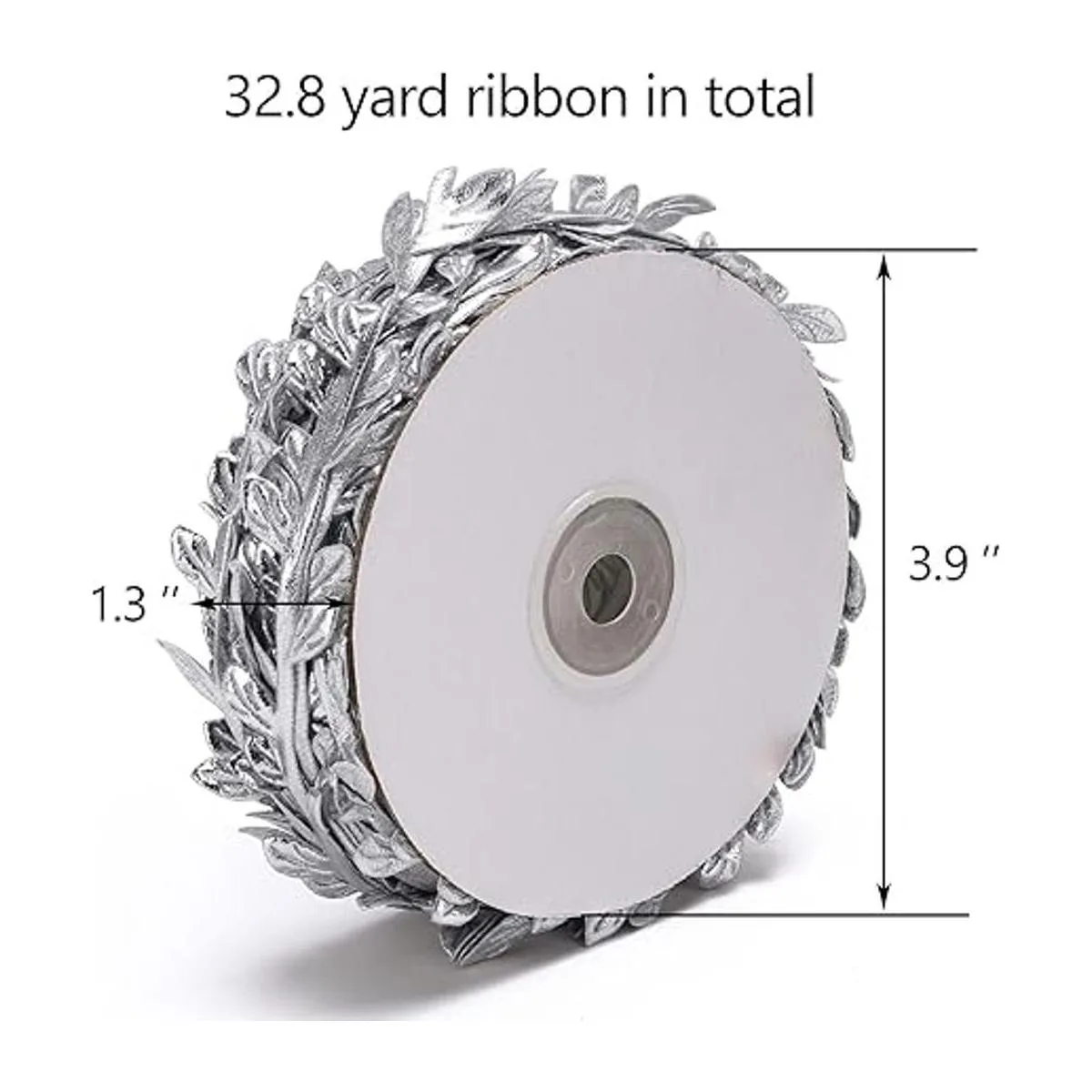 Cinta de hojas plateadas de 32.8 yardas, cuerda de corte de cinta de hojas para manualidades, fabricación de guirnaldas de coronas, decoración de jardín del hogar plata