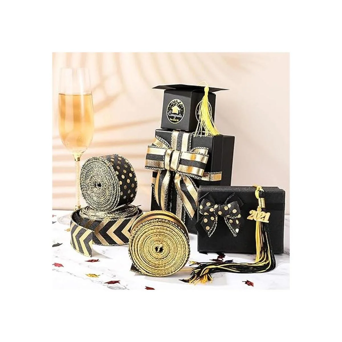 Diseño de patrón de bronceado: nuestras cintas decorativas adoptan un diseño de bronce, que están decoradas con patrón de rayas de bronce dorado, patrón de ondas de bronce dorado y patrón de puntos de bronce dorado, combinando colores representativos de festivales y patrones clásicos, adecuado para Año Nuevo, ceremonia de graduación, boda, decoración de fiesta de cumpleaños