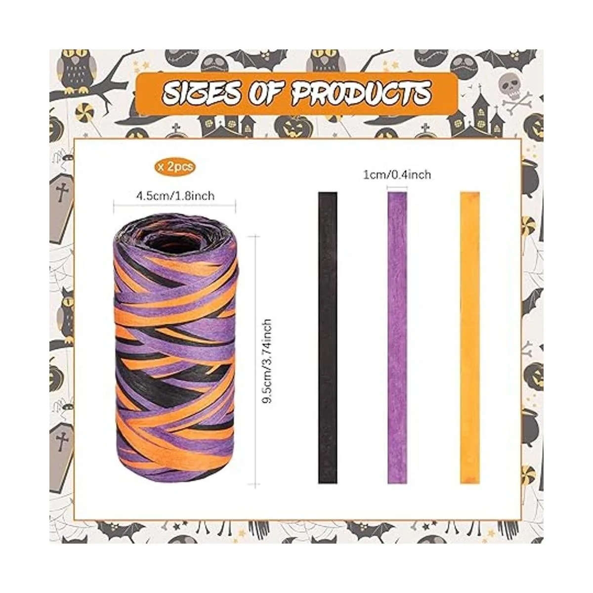 El paquete incluye: hay 2 rollos de cintas de papel de rafia de Halloween en el paquete que están diseñadas con colores mixtos, cada rollo mide aproximadamente 262.5 ft, un total de aprox. 524 pies, suficiente para decorar varios artículos o compartir con otros