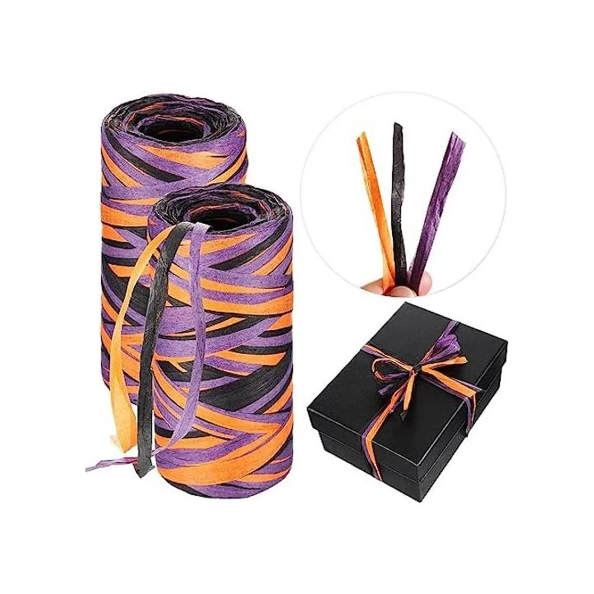 Cinta de rafia de Halloween de 524 pies, cinta de papel de rafia de colores, cordel de Halloween, cinta de manualidades para coronas, fiestas, hogar, decoración de bricolaje, canastas, 3 colores 2 rollos