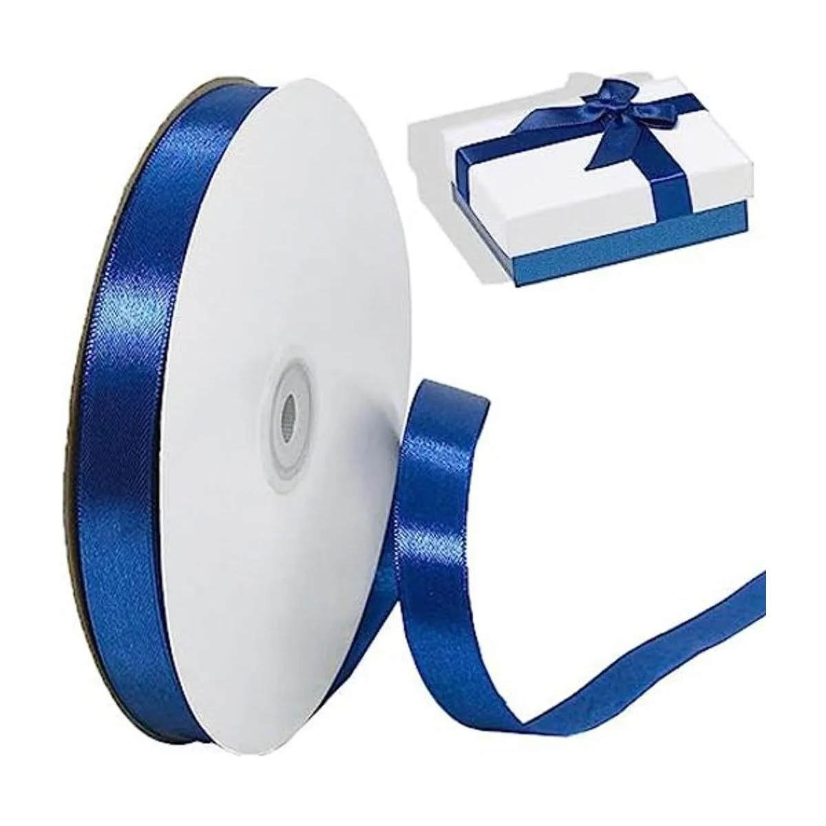 Tamaño perfecto: la cinta de satén azul marino es de 5/8 pulgadas de ancho x 100 yardas, y perfecta para envolver regalos, decoración de fiestas, decorar árboles de Navidad, etc.