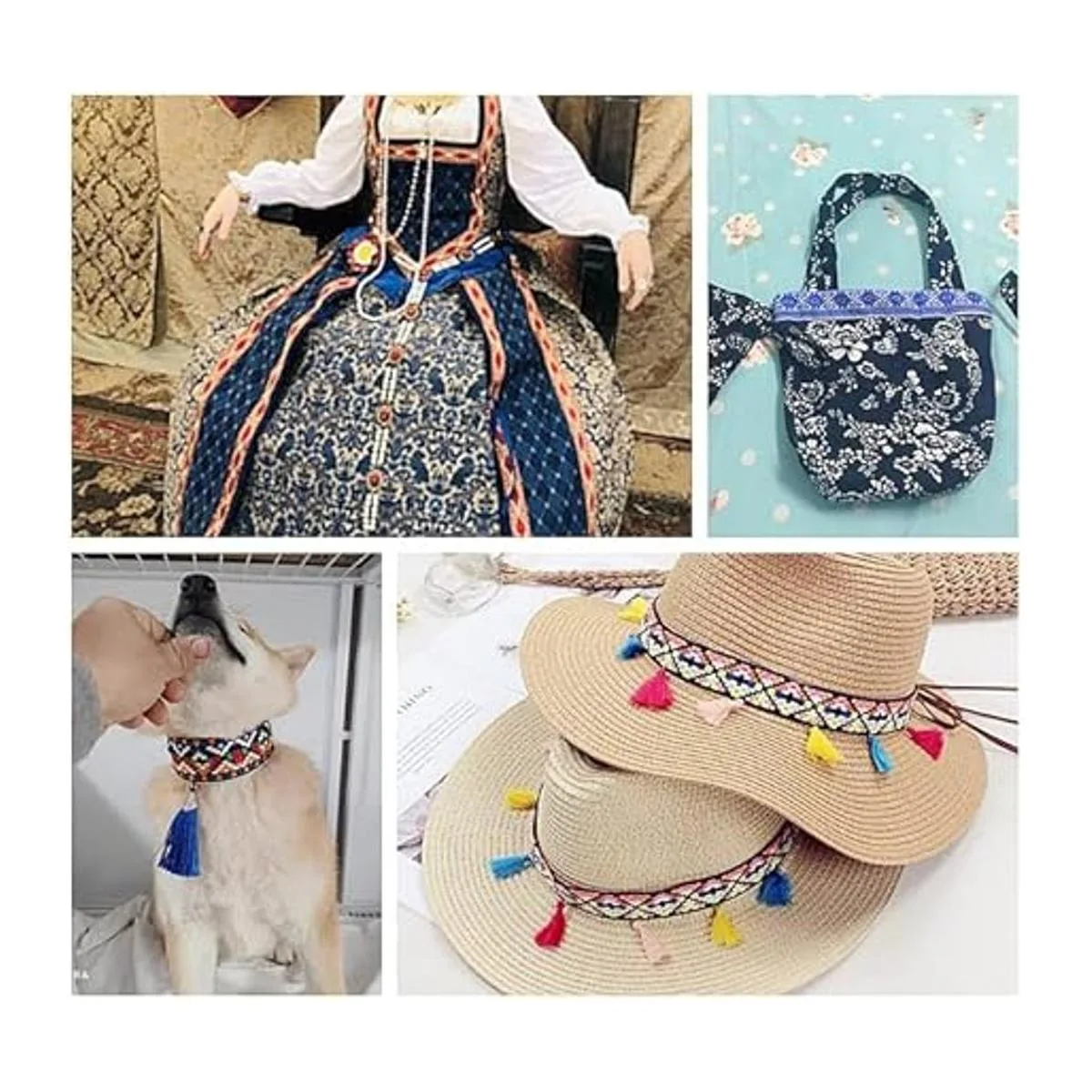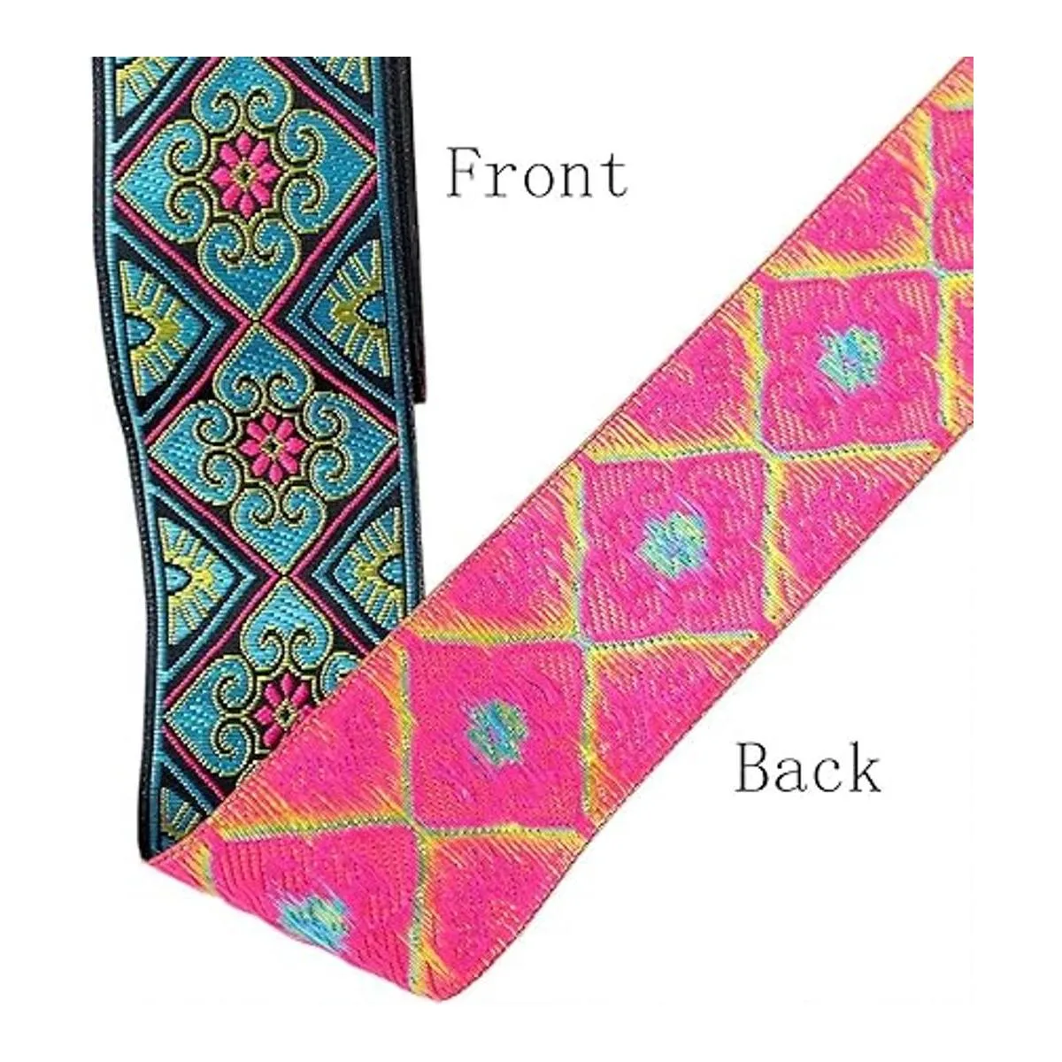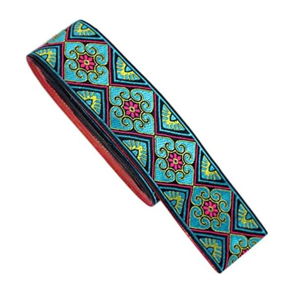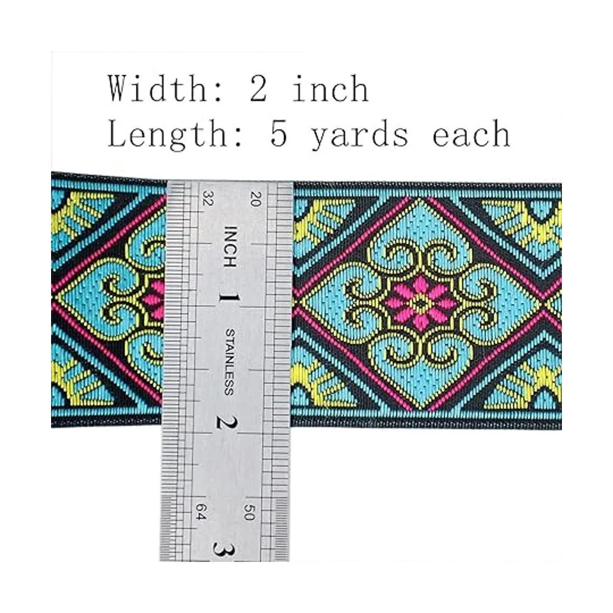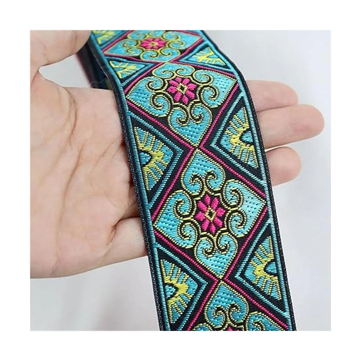 Cinta jacquard bohemia con ribete geométrico tejido, bordado floral, ribete jacquard para coser, bolsa hecha a mano, decoración de ropa 5 yardas