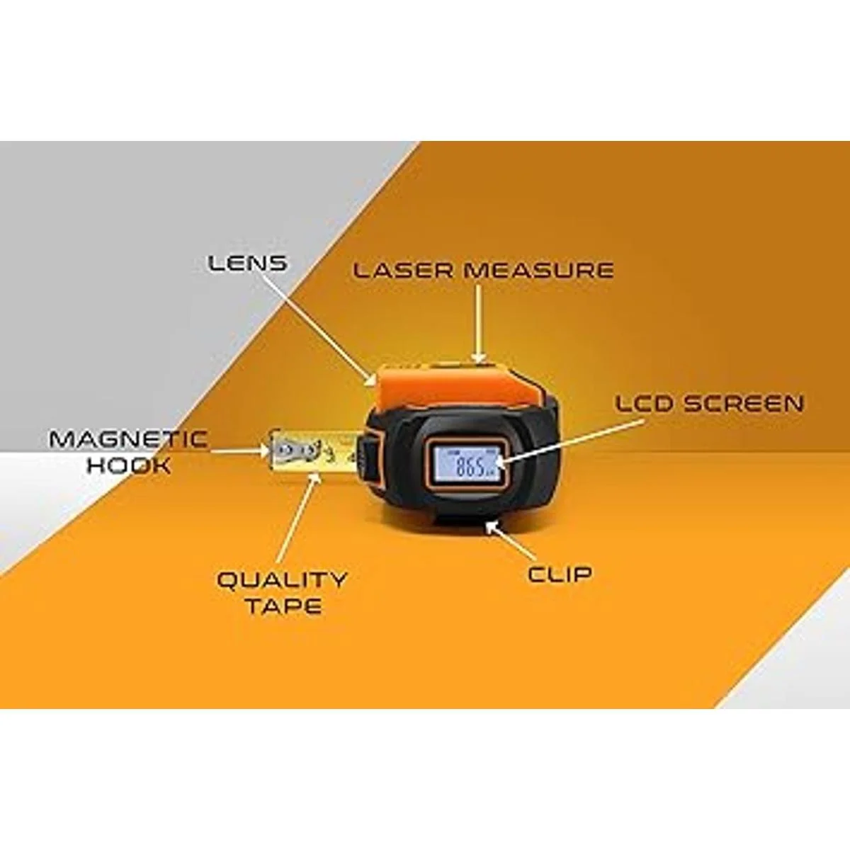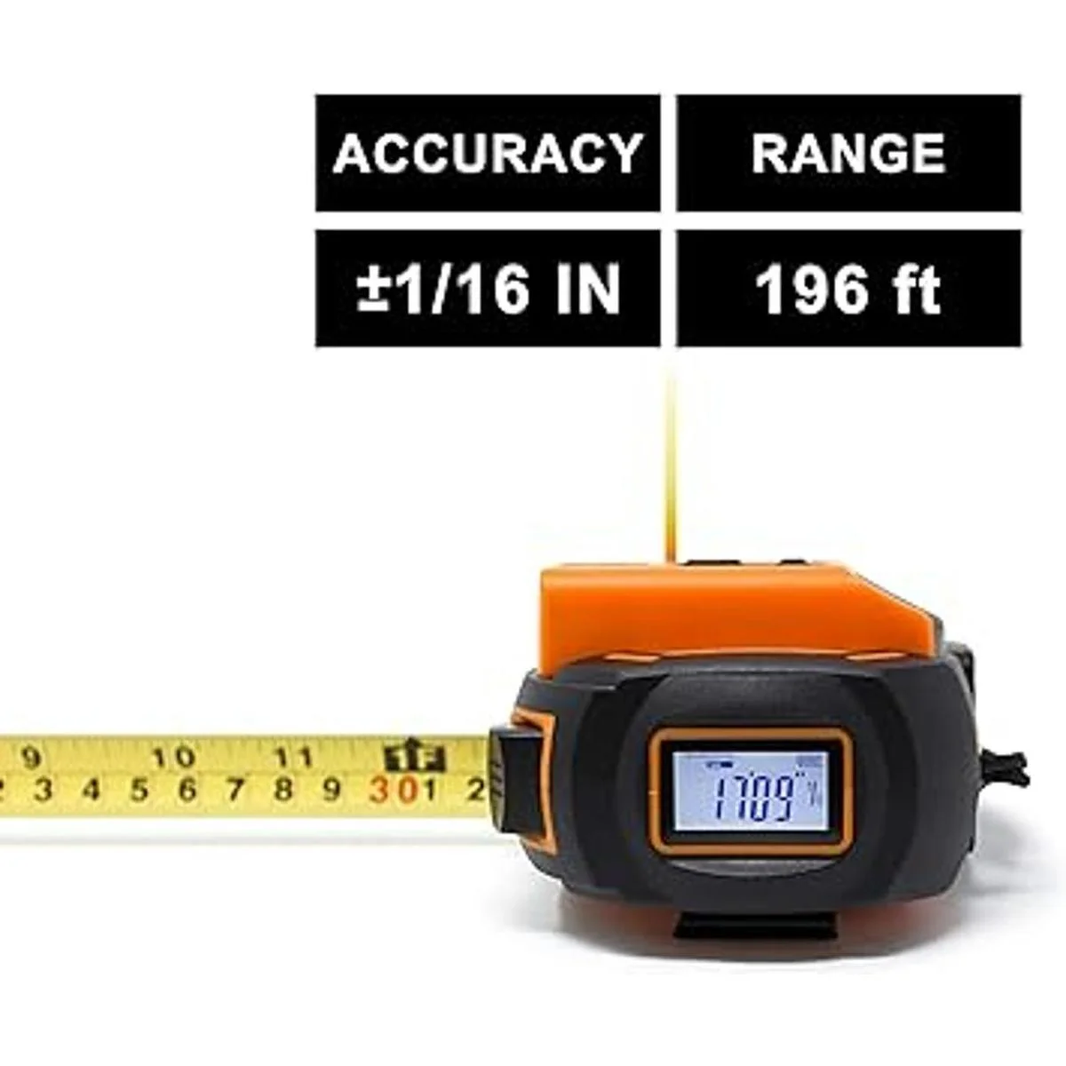 Versatilidad: una cinta métrica de 16 pies con unidades de Estados Unidos y unidades métricas para medición de cerca y práctica, una medida láser de 196 pies para un mayor alcance. Convierte unidades entre pies y pulgadas, pulgadas 1/16, pulgadas decimal, pies decimales, medidor.