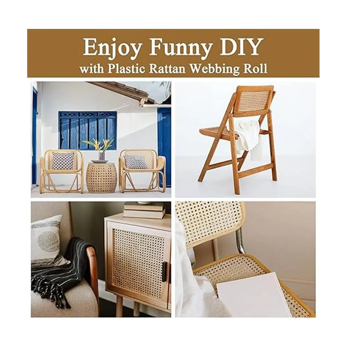 Cintas de caña de ratán de plástico de 17 x 5 pies, rollo de red de caña abierta tejida para proyectos de decoración de muebles de enlatado de bricolaje: silla, gabinete, techo y puerta (59 x 17 pulgadas)