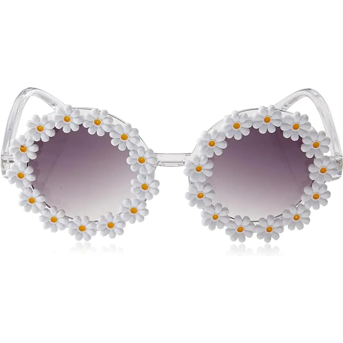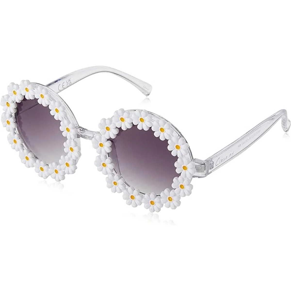 Circus by Sam Edelman Circus Sam Edelman CC346 Marco de flores margaritas con protección UV, gafas de sol redondas para mujer, tendencia derecha G, blanco, 2.441 in de EE. UU, Blanco, 62 mm