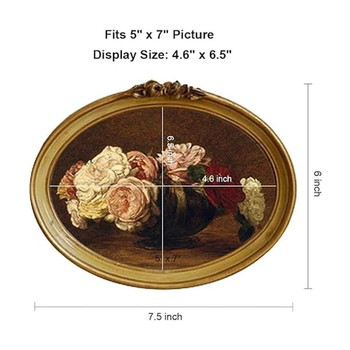 CISOO Marco de fotos ovalado vintage de 5 x 7 pulgadas, marco de fotos antiguo, decoración de mesa de pintura decorativa y colgante de pared, decoración del hogar, galería de fotos adornada, arte de galería de fotos, oro bronce