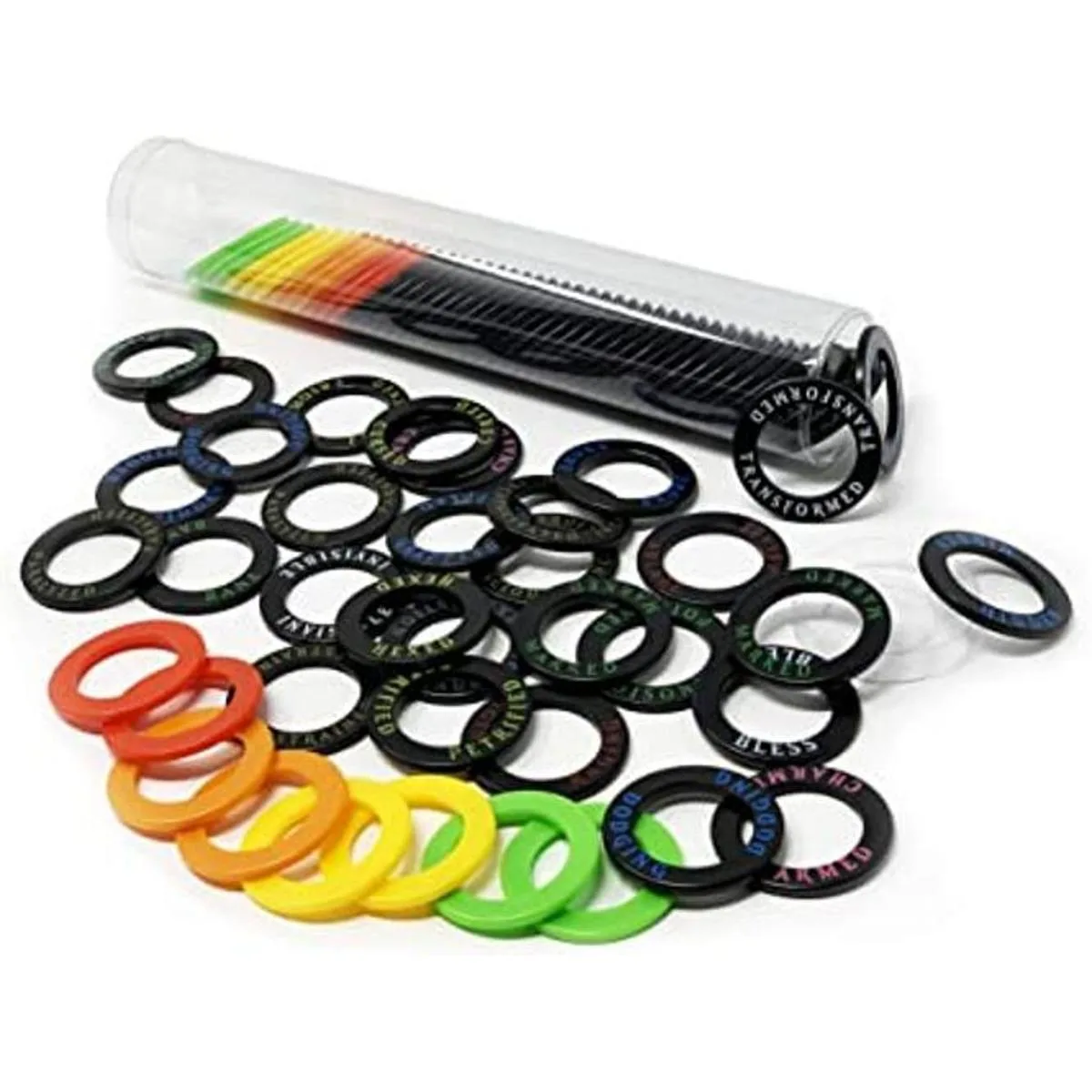 El juego de anillos de salud y condición incluye 80 anillos: 30 condiciones/efectos únicos, y 4 marcadores de salud.