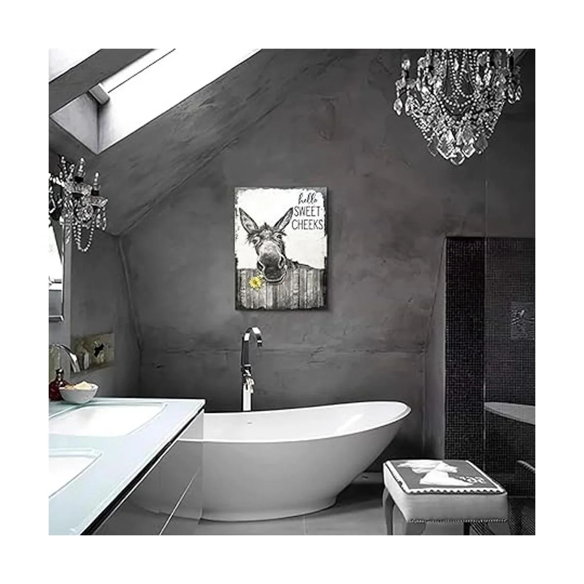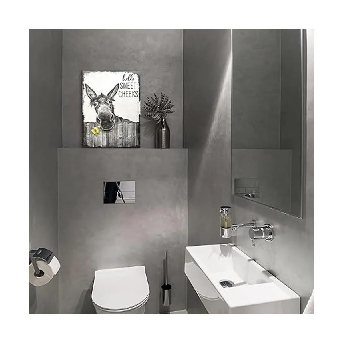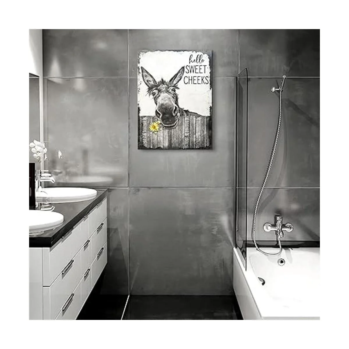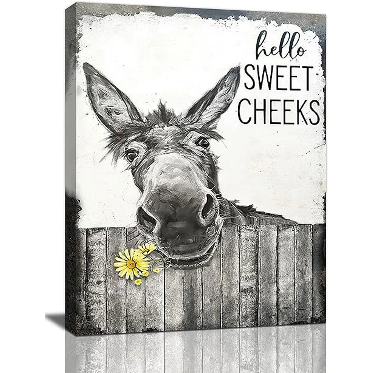 citari Arte de pared de baño de granja, póster divertido de burro para pared, lienzo rústico, pintura en blanco y negro, decoración de pared de animales, arte enmarcado vintage, 12 x 16 pulgadas
