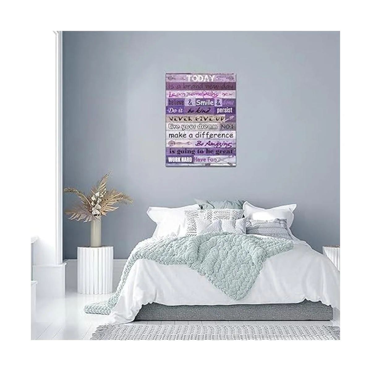 citari Arte inspirador de pared con citas, decoración de pared morada para sala de estar, oficina positiva, lienzo impreso, obras de arte para el hogar, póster motivacional, gran imagen enmarcada para dormitorio, baño, 12 x 16 pulgadas