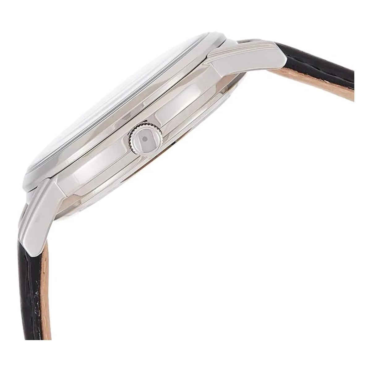 Reloj de acero inoxidable con carátula blanca con indicadores azul Dauphine y subcarátulas de día y fecha.