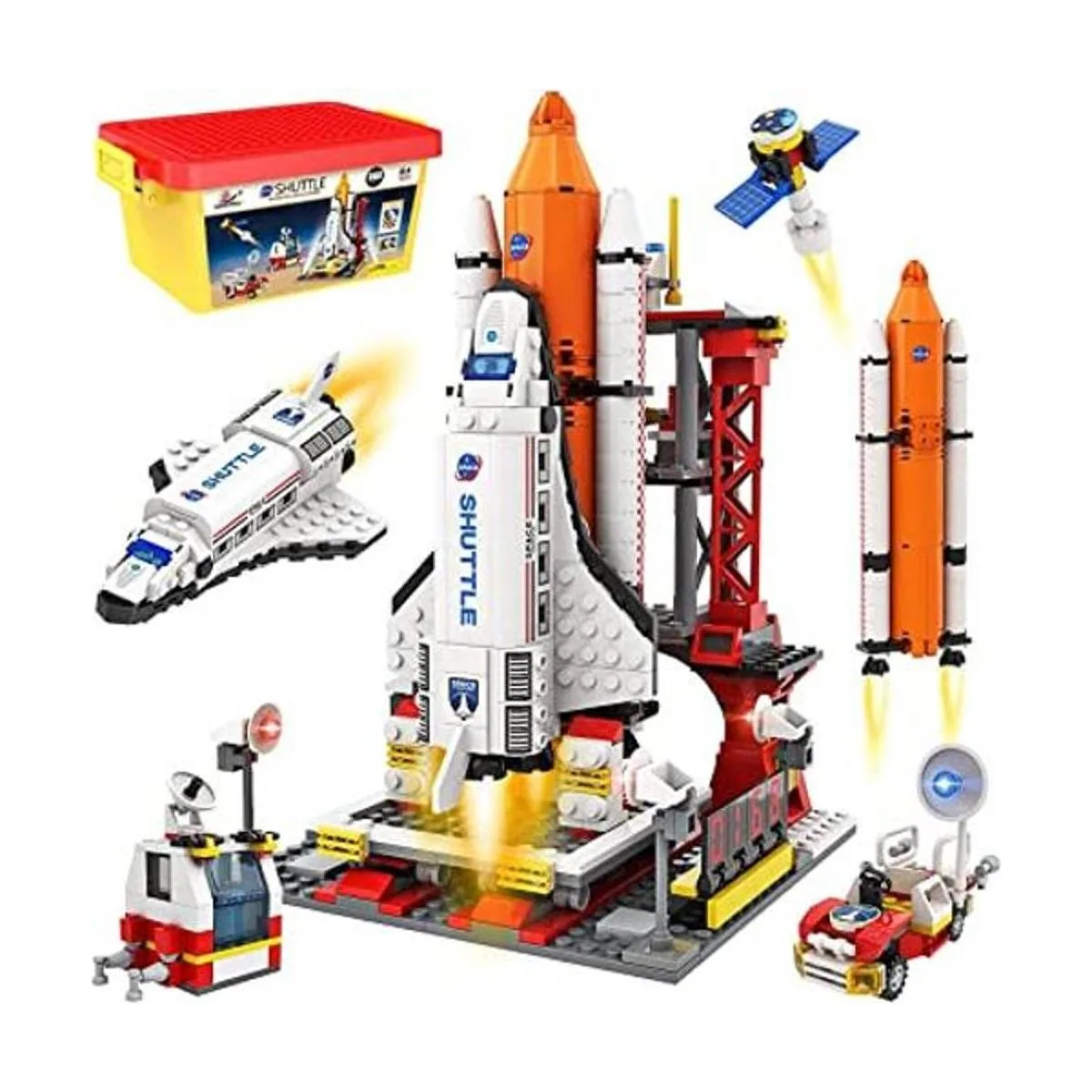 Contenido de la caja: Los niños pueden construir un modelo de juguete de transbordador espacial, centro de lanzamiento, consola, rover Marte y satélite. Además de un manual fácil de seguir y bonitas calcomanías. Los juegos de espacio urbano cumplen con los estándares de seguridad para niños y son compatibles con la mayoría de marcas que pueden construir juntas para el juego creativo.