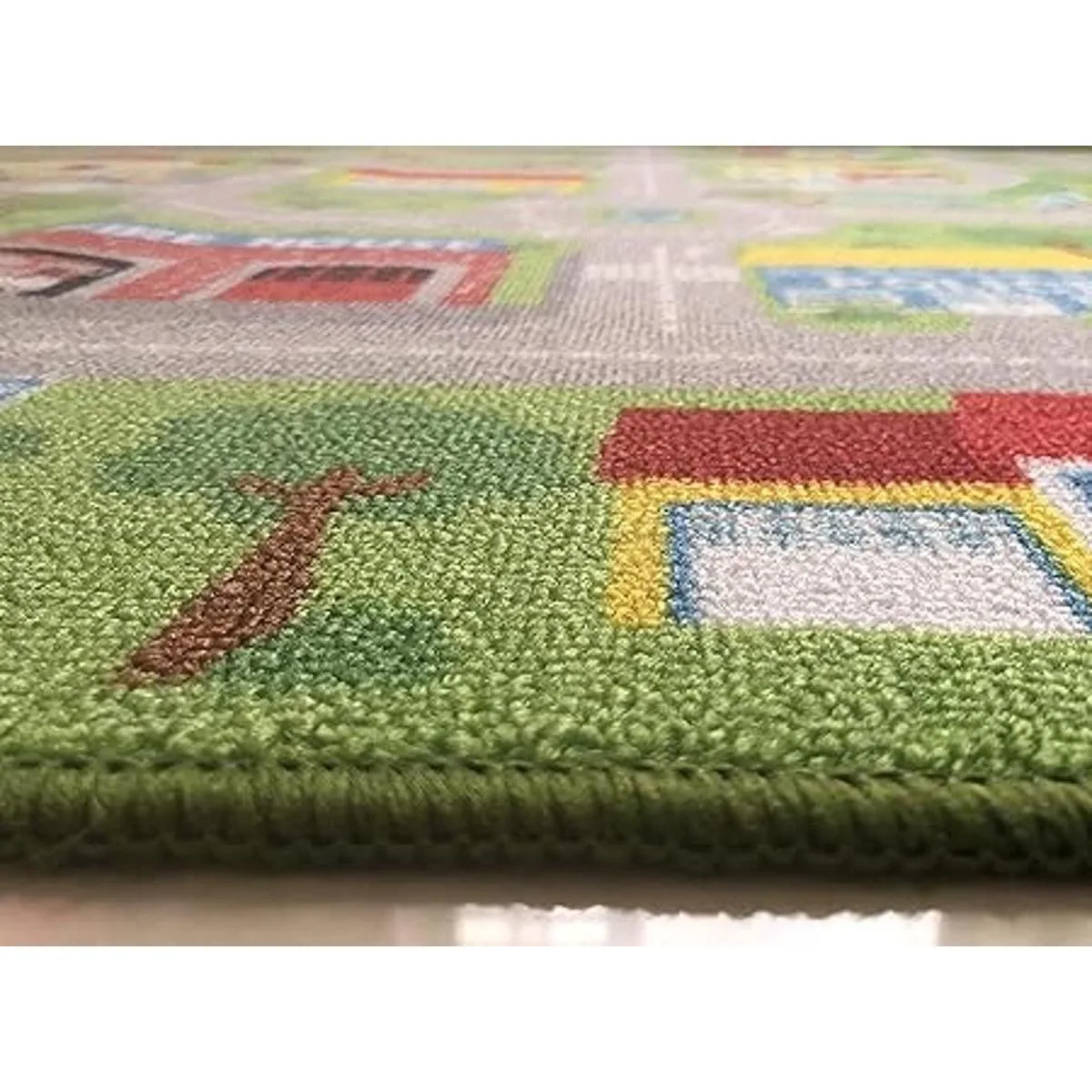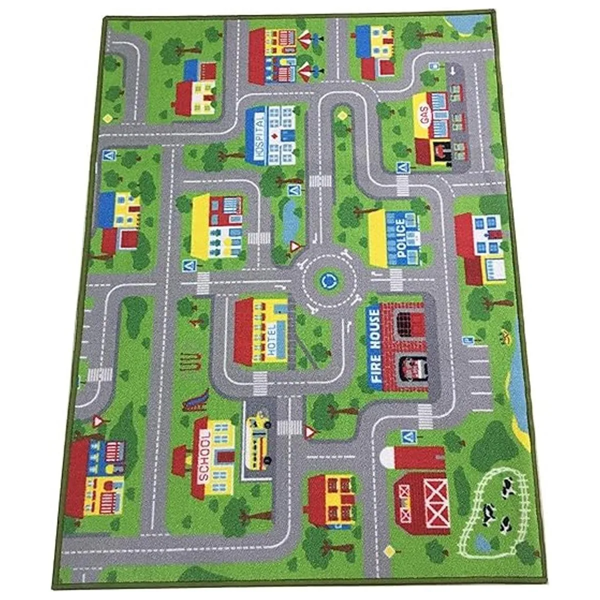 City Street Map Alfombra para niños con carreteras, alfombra de juego con estación de hospital escolar, banco, hotel, librería, taller gubernamental, granja para niños, niñas, guardería, dormitorio, sala de juegos, aula 51 x 39 pulgadas