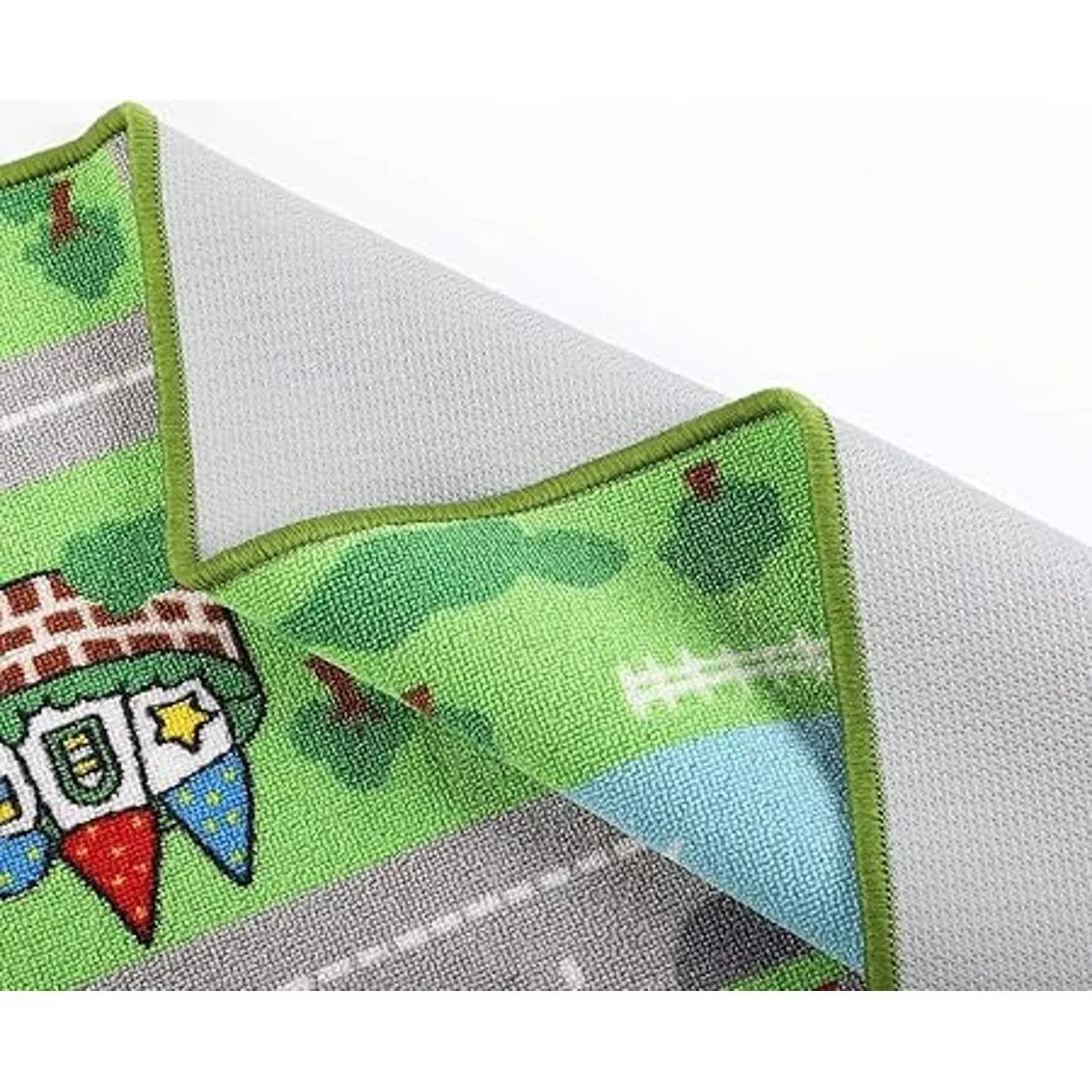Esta alfombra para niños es perfecta para niños. Especialmente para niños preescolares. La colección de alfombras para niños proporciona a los niños un telón de fondo interesante e interactivo para una serie de juegos emocionantes. La divertida alfombra para niños representa una calle llena de hospital, restaurante, cafetería, policía, casa, tiendas y mucho más. A tu pequeño le encantarán los colores vibrantes y divertidos de estas alfombras de juego