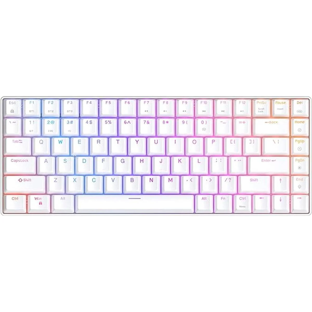CIY Teclado mecánico para videojuegos True RGB retroiluminado WiredWireless Bluetooth 5.0 PBT tipo C hasta 8 horas de duración de la batería, teclas completas programablemarco de aluminio Gateron amarillo, blanco 84 teclas