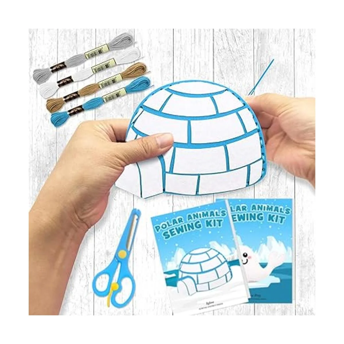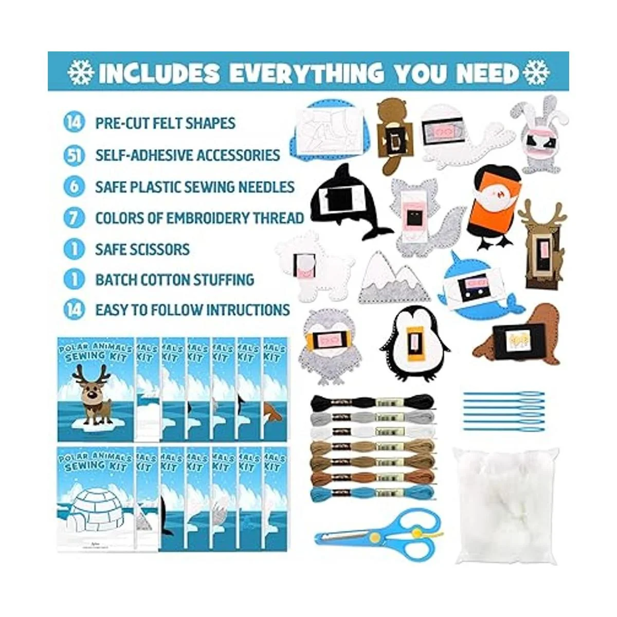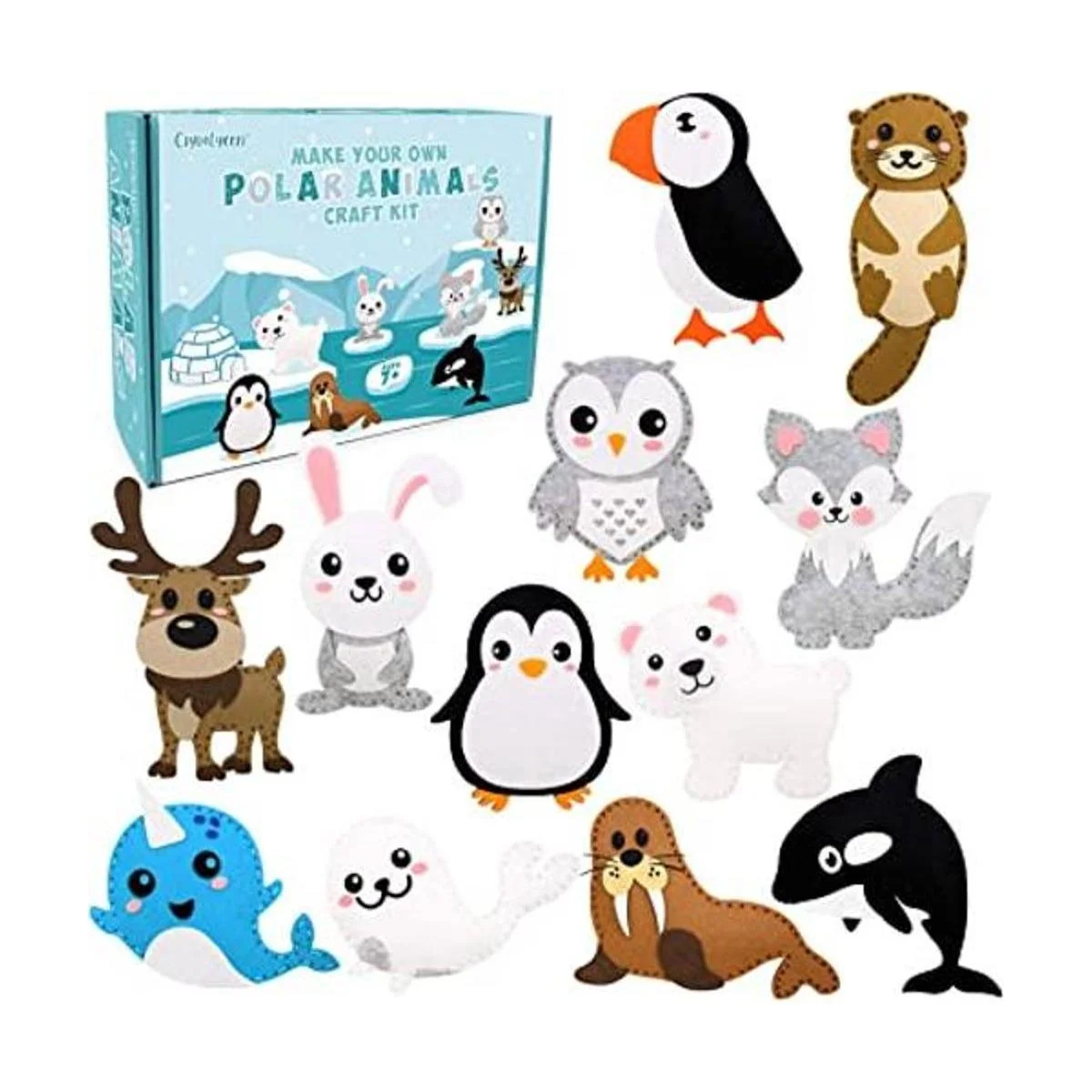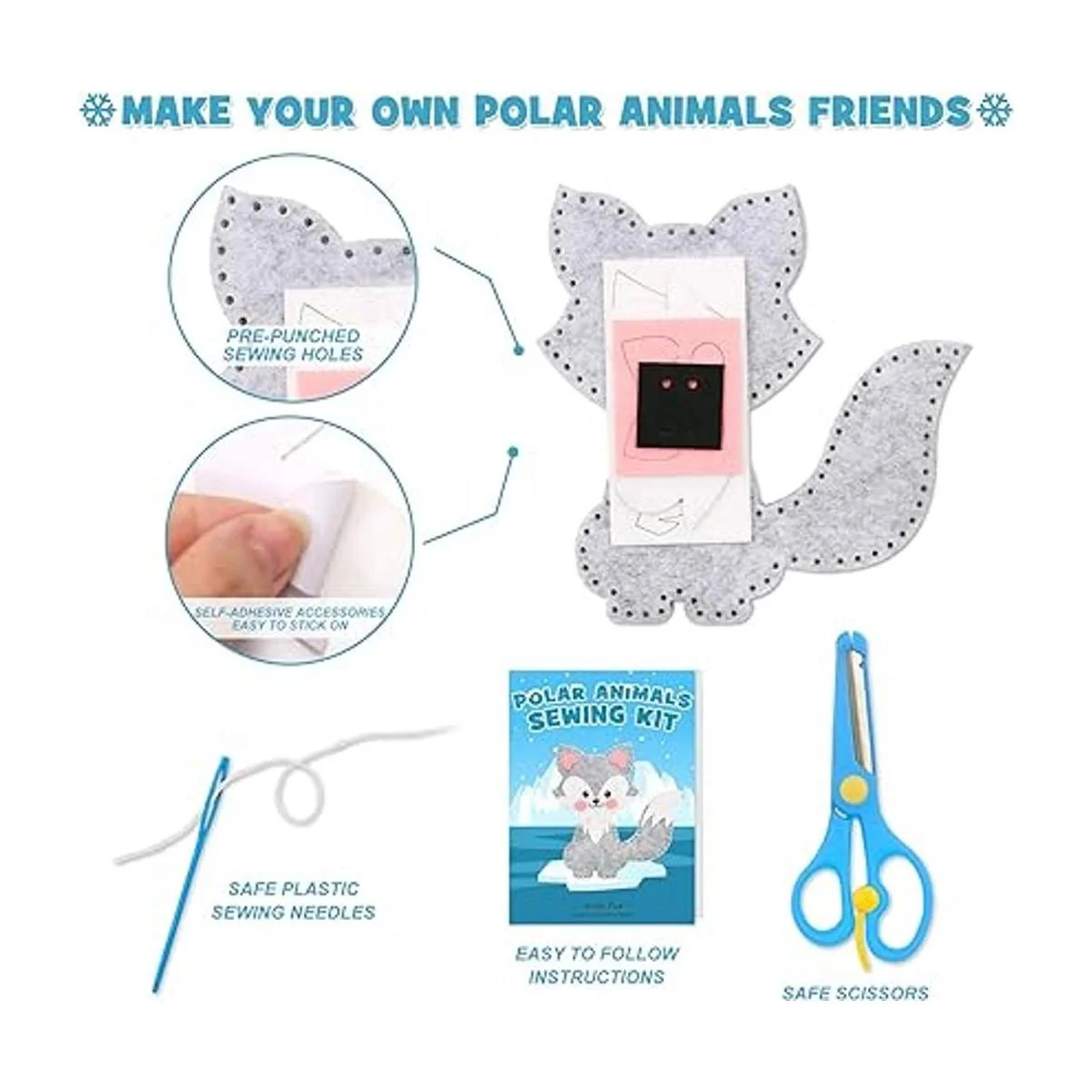 CiyvoLyeen Kit de costura de animales polares para niños para hacer tus propios animales polares de invierno, incluye 14 proyectos creativos para coser principiantes, divertido regalo educativo para niños y niñas