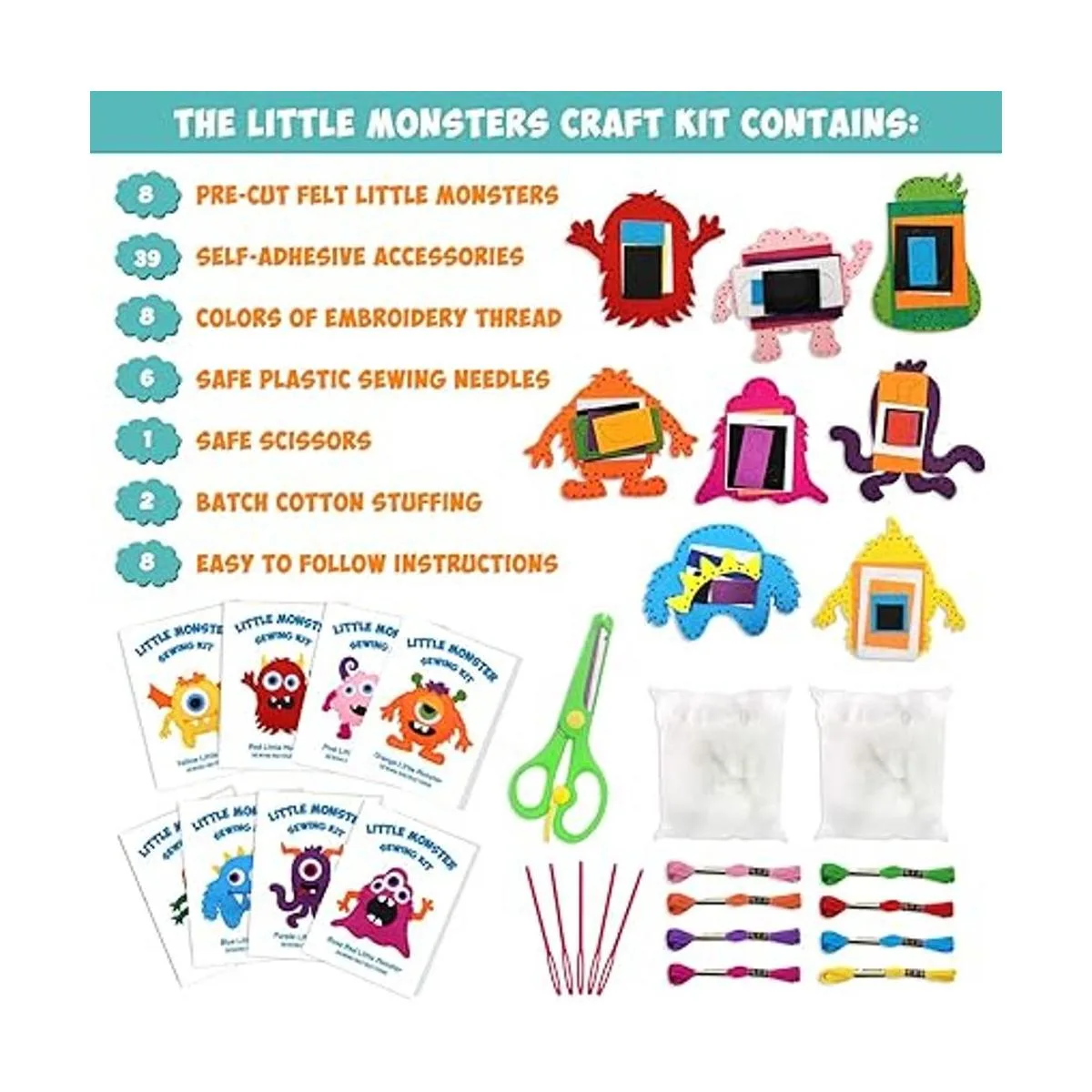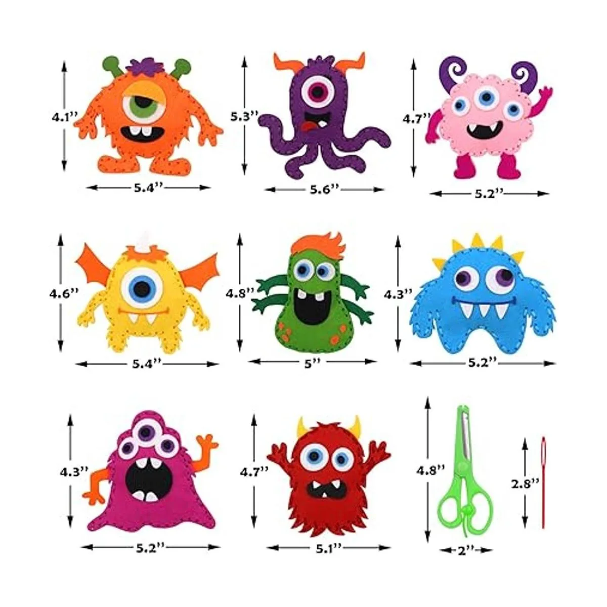 CiyvoLyeen Little Monsters Kit de manualidades de costura para niños, diseño de monstruo de fieltro, para manualidades, manualidades, manualidades, regalo para principiantes, juego de 8