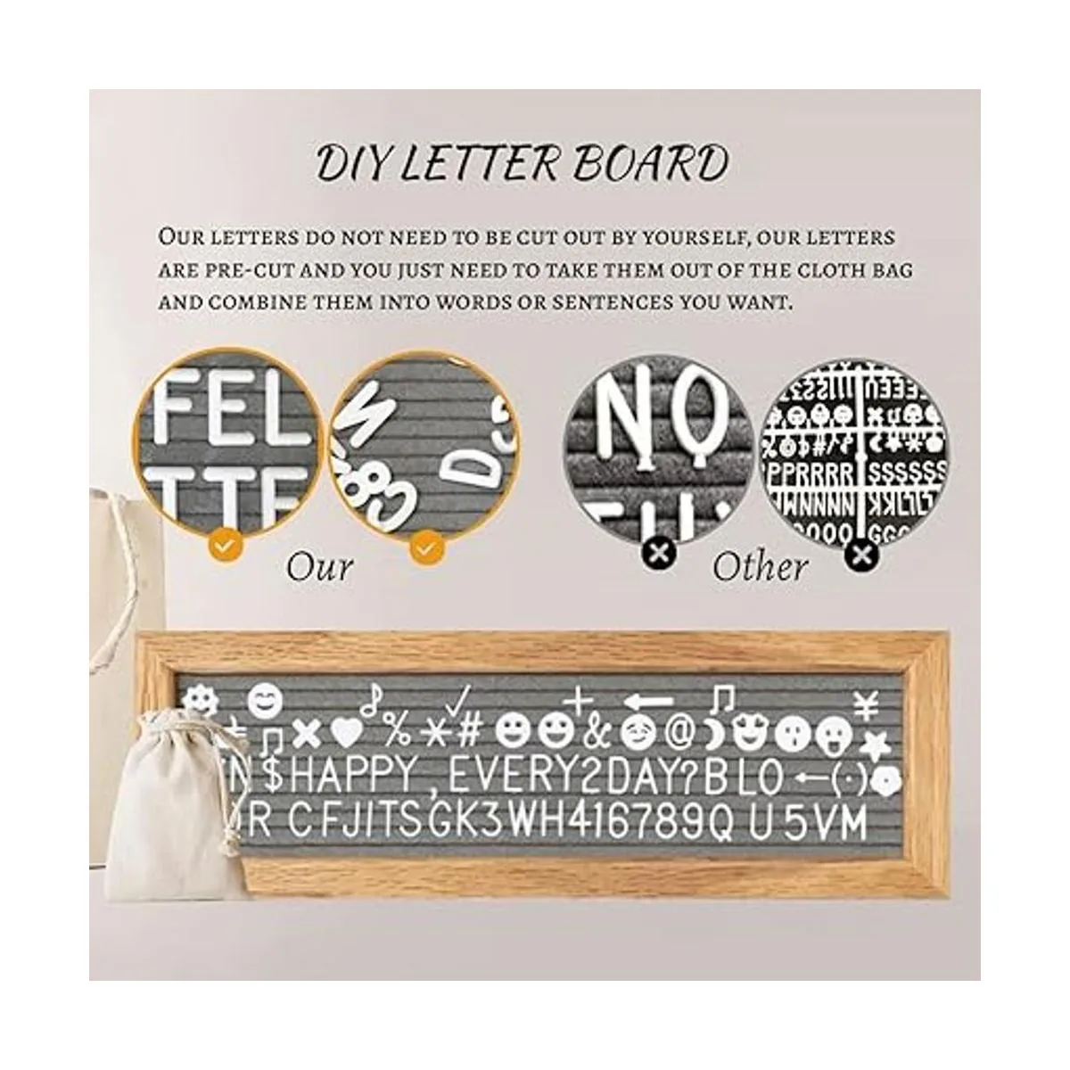 Tablero de fieltro de madera de alta calidad: el tablero de letras está hecho de madera de roble, resistente y duradero para un uso a largo plazo. 340 letras intercambiables reutilizables precortadas son fáciles de usar, empuja en ranuras en fieltro, retira o cambia. Conveniente para mostrar y cambiar el tema o la información de las fotos, lo que es una buena idea para grabar tus preciosos recuerdos fotográficos.