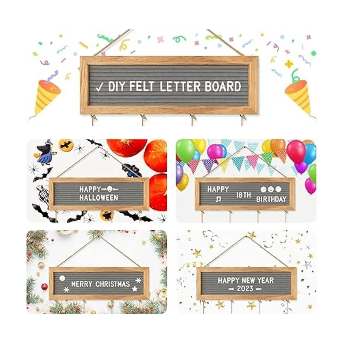 CJIAWYS Marcos de fotos para colgar en la pared, marco de exhibición de fotos, tablero de letras de fieltro con 340 letras y 30 clips, marcos de fotos de collage únicos para regalos de fiesta de cumpleaños de Navidad