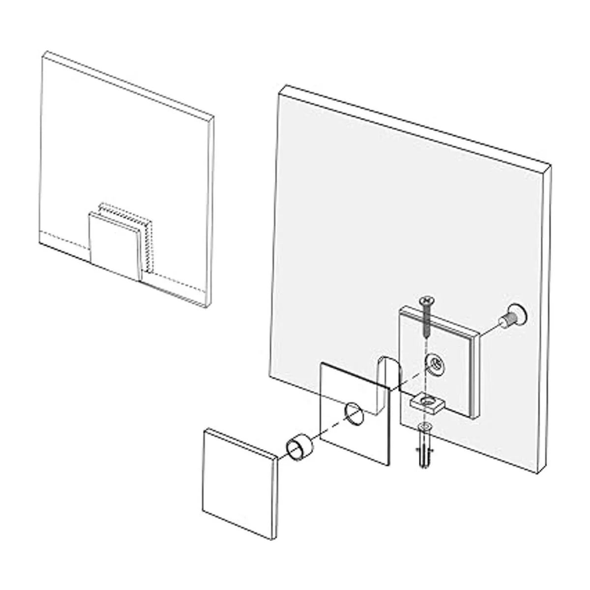 Paquete de accesorios: partículas de goma en la pared, tornillos de cabeza avellanada Phillips, llave hexagonal de 0.157 in, cubierta de tornillo BS.