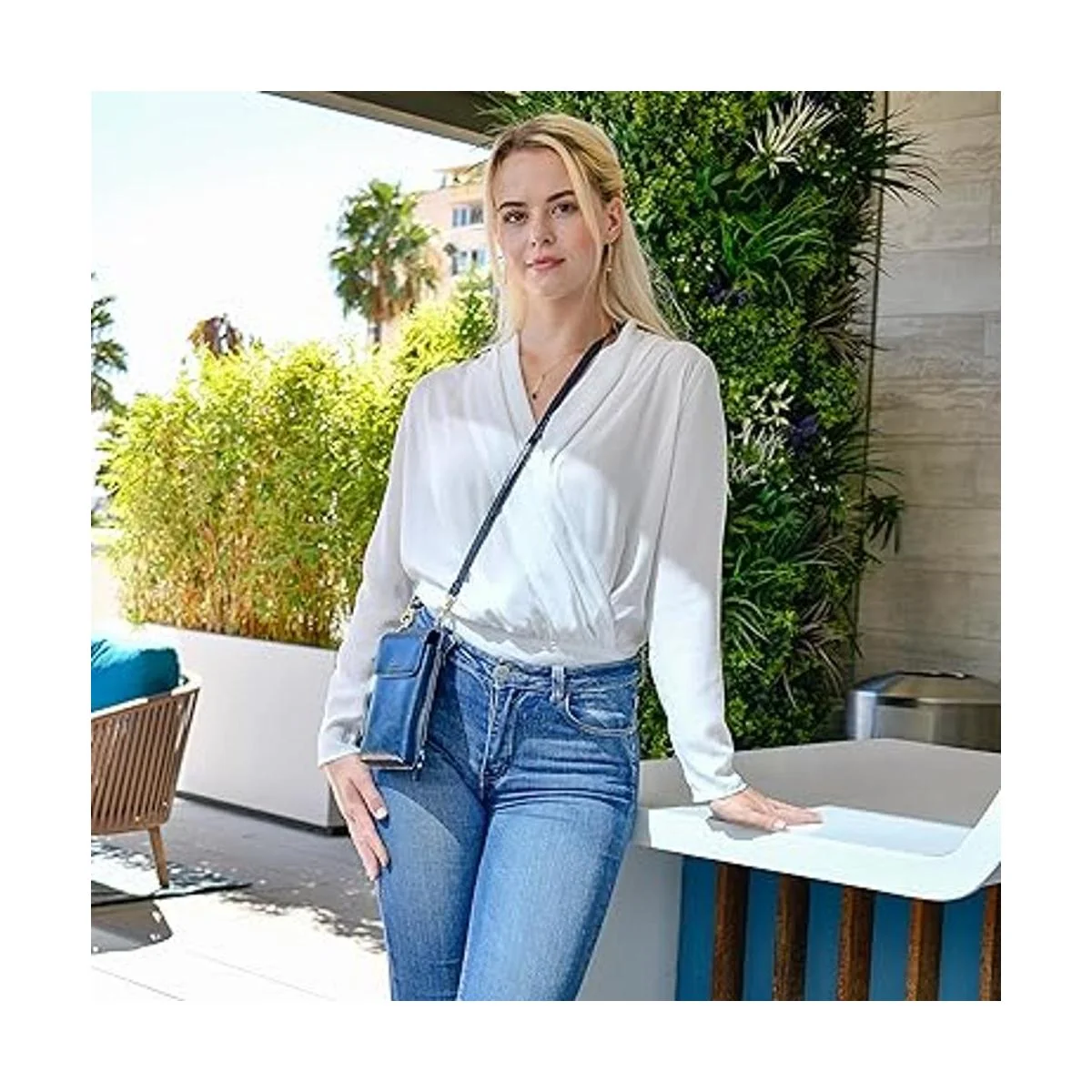 Funda de teléfono con bloqueo RFID para mujer 7.0 x 3.5 x 1.3 pulgadas, las pequeñas bolsas cruzadas de Claasico para mujer combinan alta seguridad y moda, manteniendo las tarjetas de crédito de mujer, dinero en efectivo y smartphone perfectamente organizados y seguros con bloqueador RFID integrado Diseño delgado y compacto con cómoda correa ajustable cruzada.