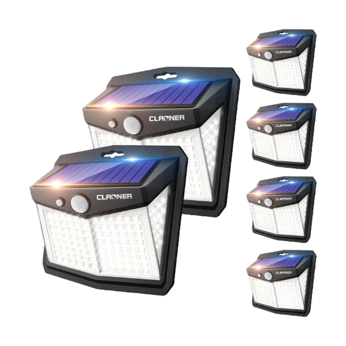 CLAONER Luces solares para exteriores, 128 LED6 paquetes Luces solares con sensor de movimiento, 3 modos de trabajo, luces para exteriores con gran angular de 270 grados, luces de seguridad solares impermeables IP65 para patio, garaje y terraza