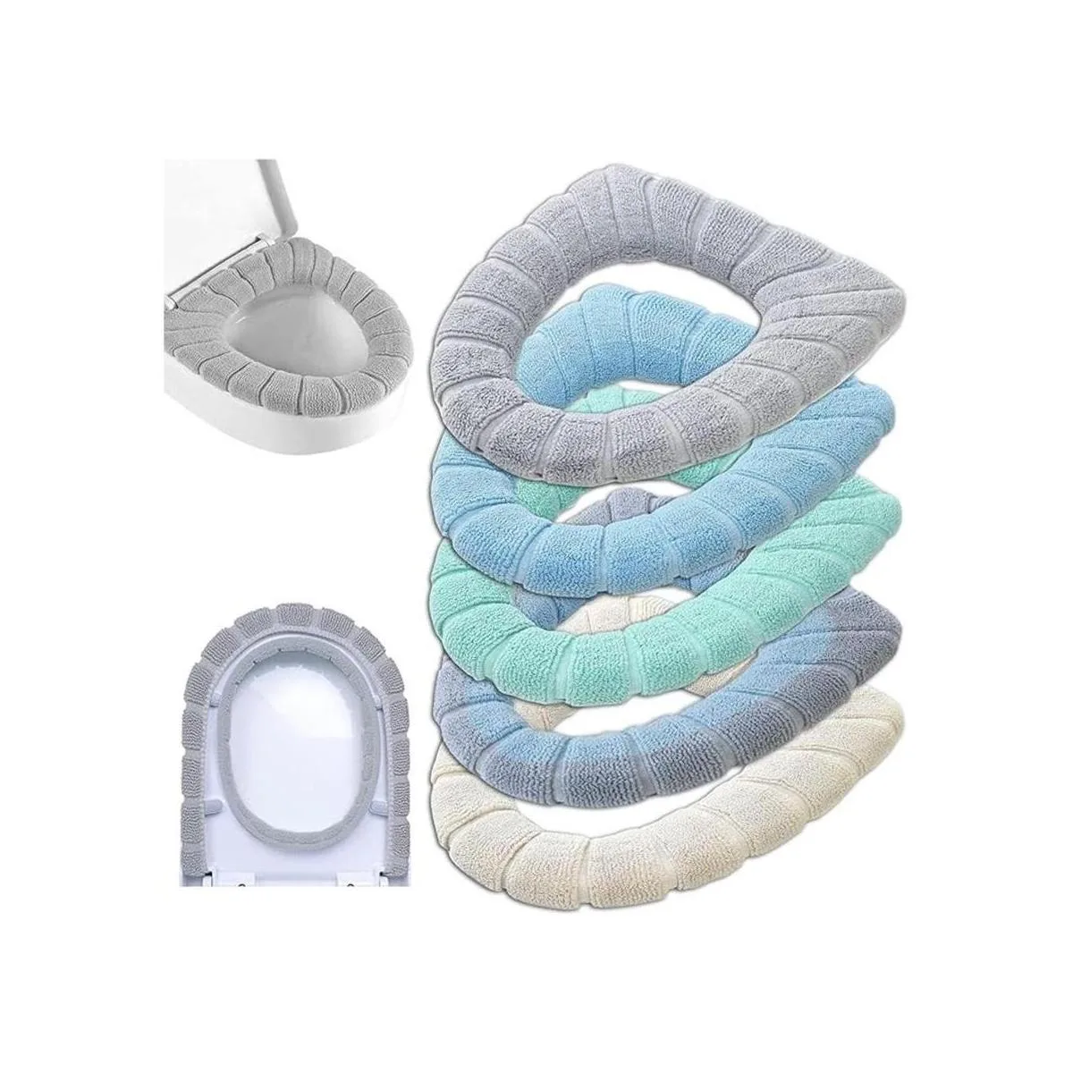 Clarmonde Funda de cojín gruesa para asiento de inodoro, fundas de asiento de inodoro, cálida, súper cálida, universal paquete de 5, color aleatorio