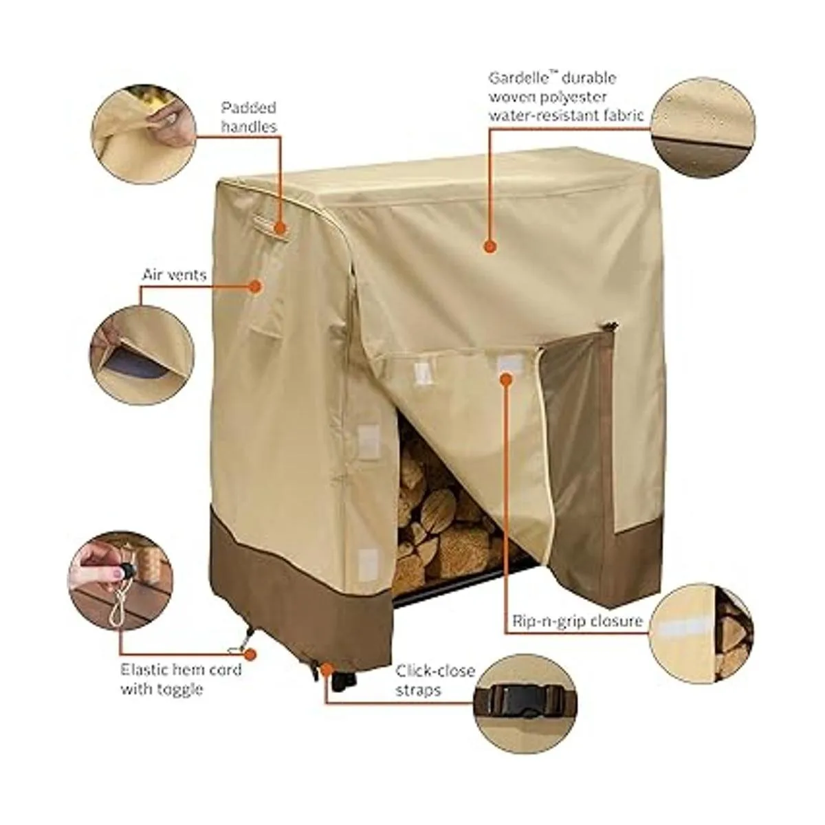 Correas de cierre de clic en la parte delantera para asegurar la cubierta en los días más lluviosos