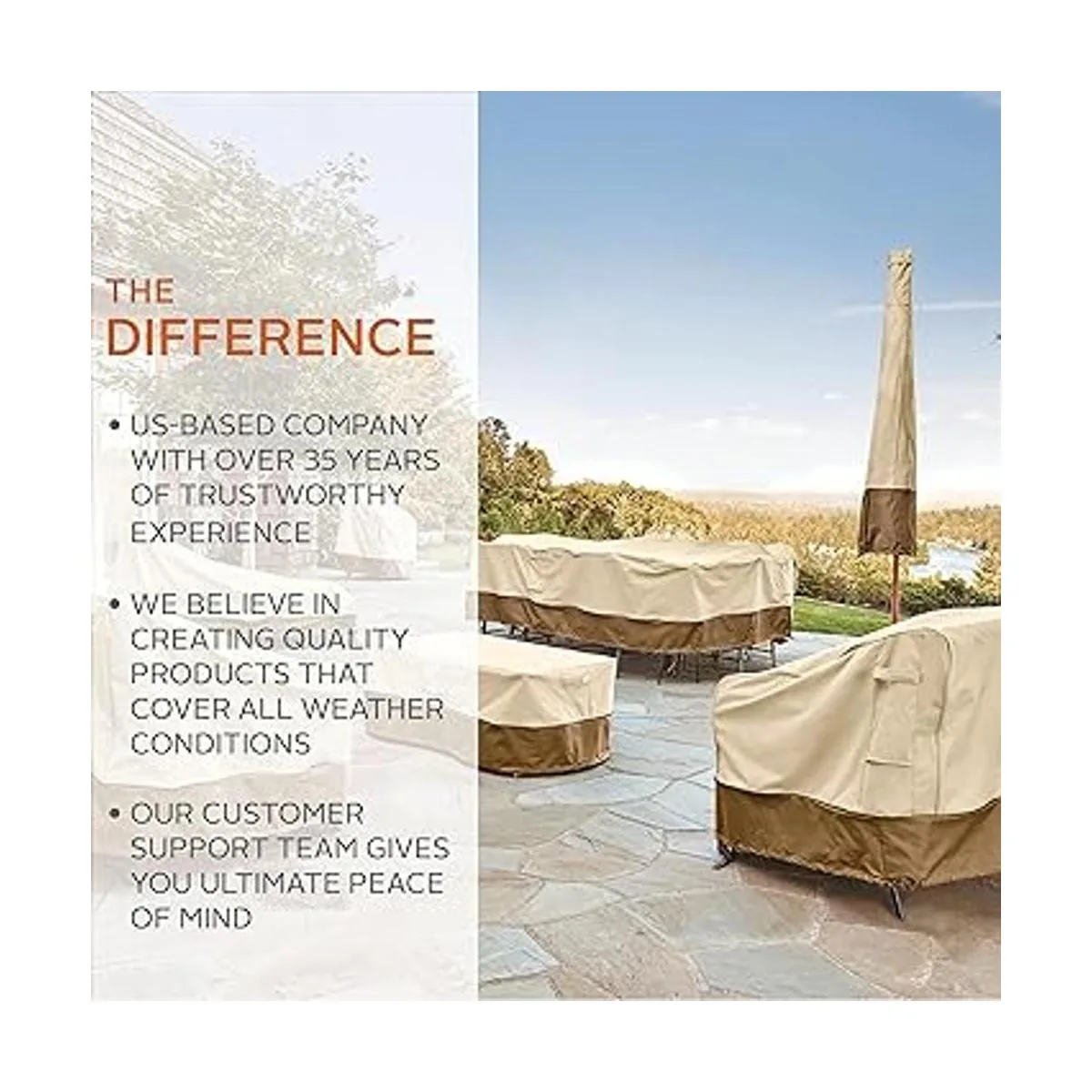 Protege tu oasis al aire libre: Buscas el juego completo Considera nuestra amplia colección, incluyendo: fundas para muebles de patio, fundas para equipos al aire libre y fundas a juego para todo tu juego de patio