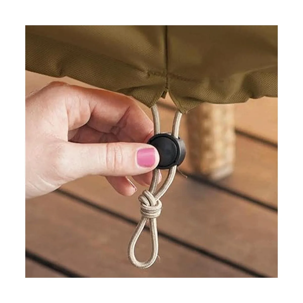 CUSTOM FIT PATIO FURNITURE COVER: The convenient elastic hem cord with adjustable toggle and buckled straps keep the cover protecting your patio furniture on the windiest days