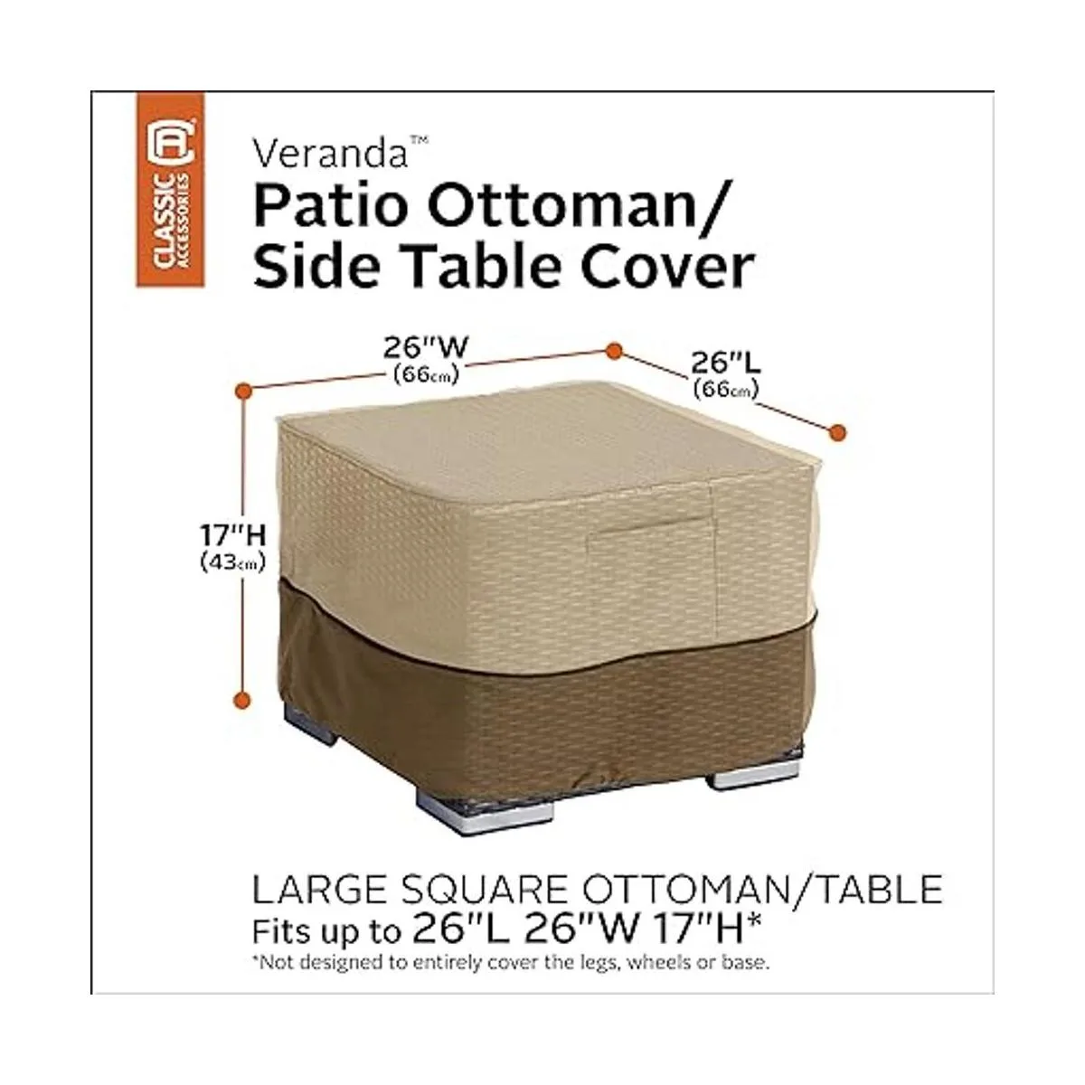 Classic Accessories Veranda, fundas de material antiderrapante para muebles estilo Otomano cuadrados de patio o mesas laterales cubre hasta 21 pulgadas de largo x 21 pulgadas de ancho x 17 pulgadas de alto, L