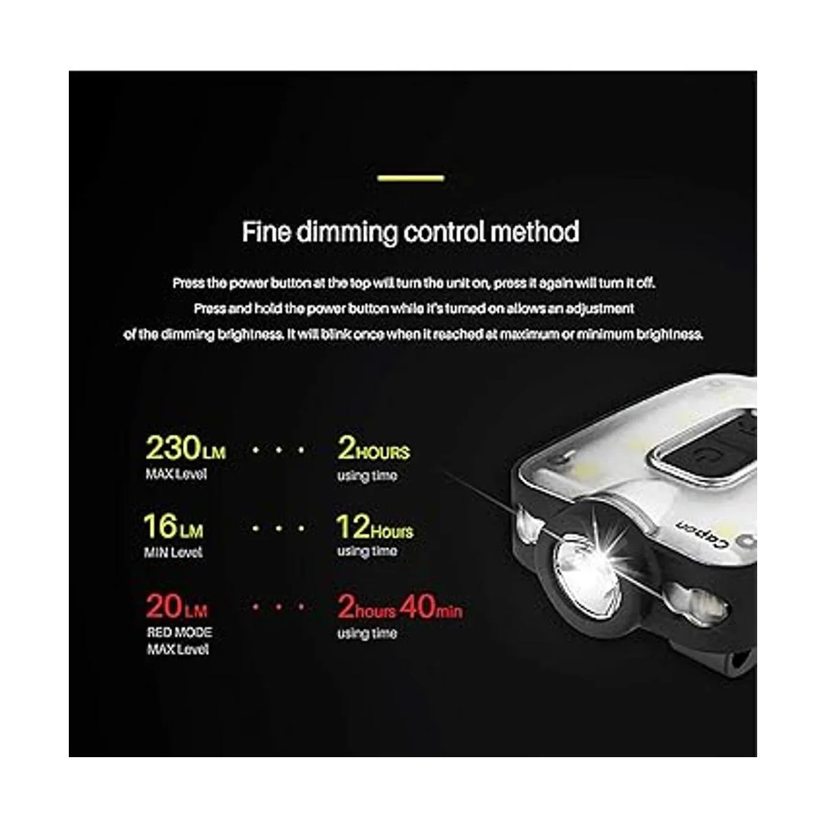 Ligero y portátil: la luz ultraligera es de solo 1.06 oz con una capacidad de batería de 400 mAh. Su pequeño tamaño lo hace extremadamente portátil y fácil de transportar dondequiera que vayas. Cuando se sujeta a un casco de seguridad, sombrero o gorra, disfruta de las manos libres y una iluminación cómoda sin ningún peso