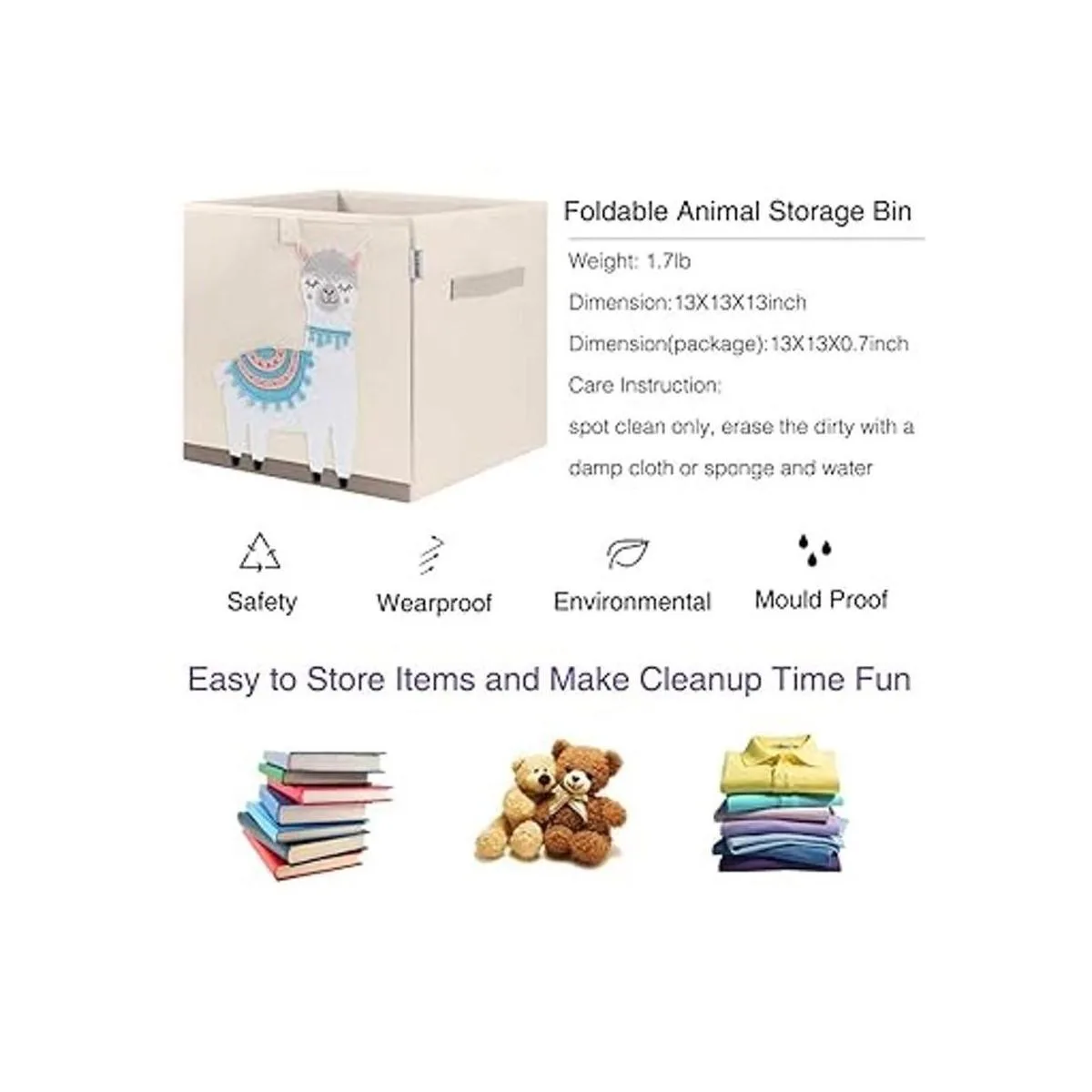 CLCROBD Contenedores plegables de almacenamiento de animales para niños, caja de juguetes de tela, pechoorganizador para guardería, 13 pulgadas Llama