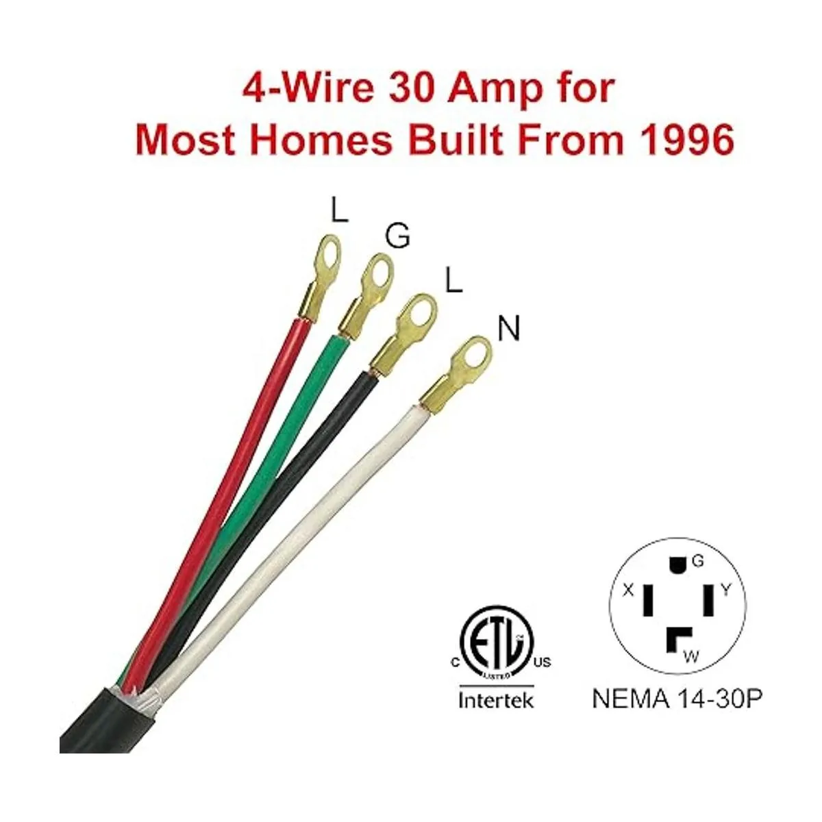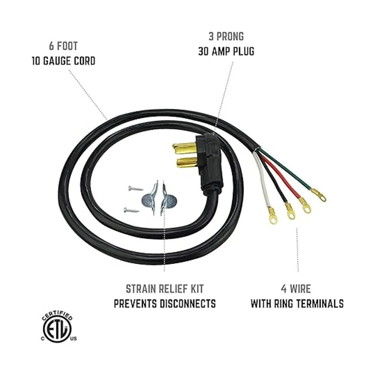 Clear Power SRDT de 6 pies 104, cable para secadora de interior, 4 cables de 30 amperios, negro, CP10019