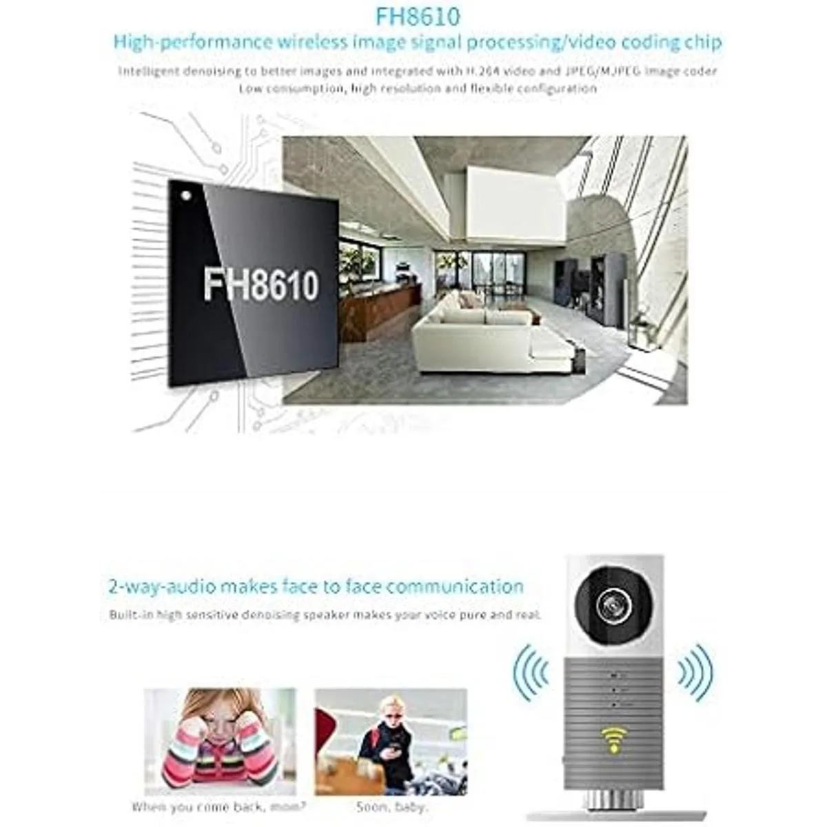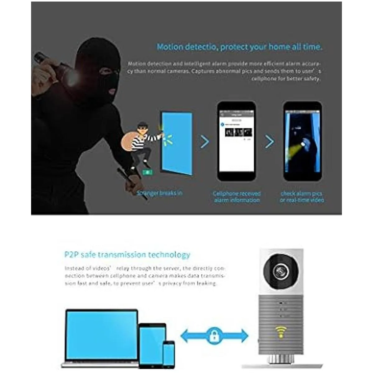 Audio bidireccional: con el micrófono integrado y el altavoz, te permite escuchar y hablar con el visitante en tu propiedad, comprobar en el bebé/anciano o decirle a tu perro que deje de ladrar con las aplicaciones del teléfono celular desde cualquier lugar
