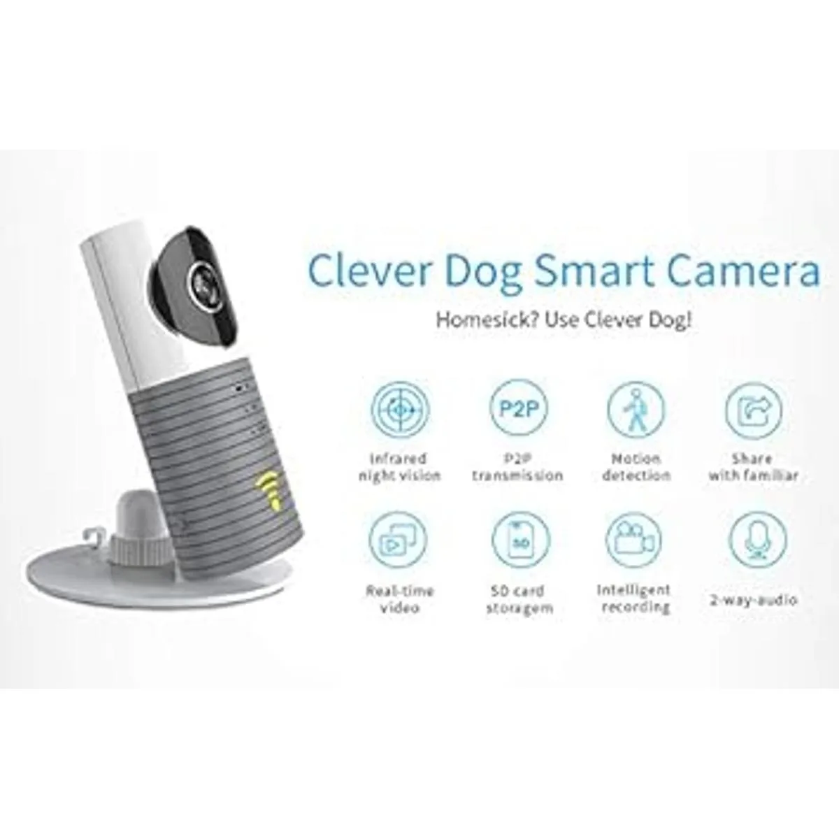 Clever Dog Cámara Wifi, cámara de niñera para mascotas pequeñas con audio y video, aplicación de teléfono celular, gran angular, sensor de movimiento, visión nocturna, interior, cámara barata para seguridad en el hogar, cachorro, monitor de bebé