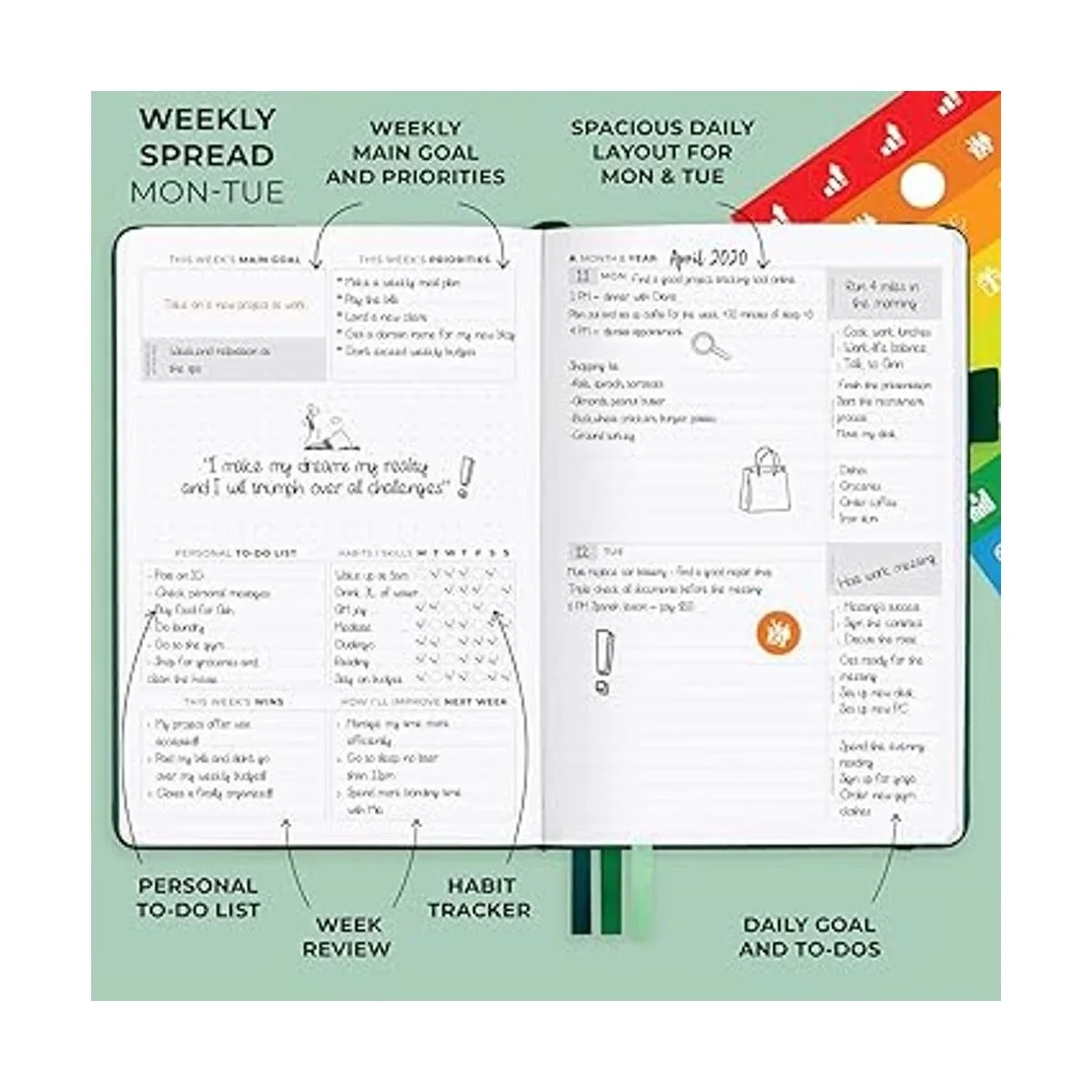 Clever Fox Planificador semanal avanzado Planificador de objetivos de vida sin fecha para la productividad diaria y gestión del tiempo Diario organizador de día Tapa dura A5