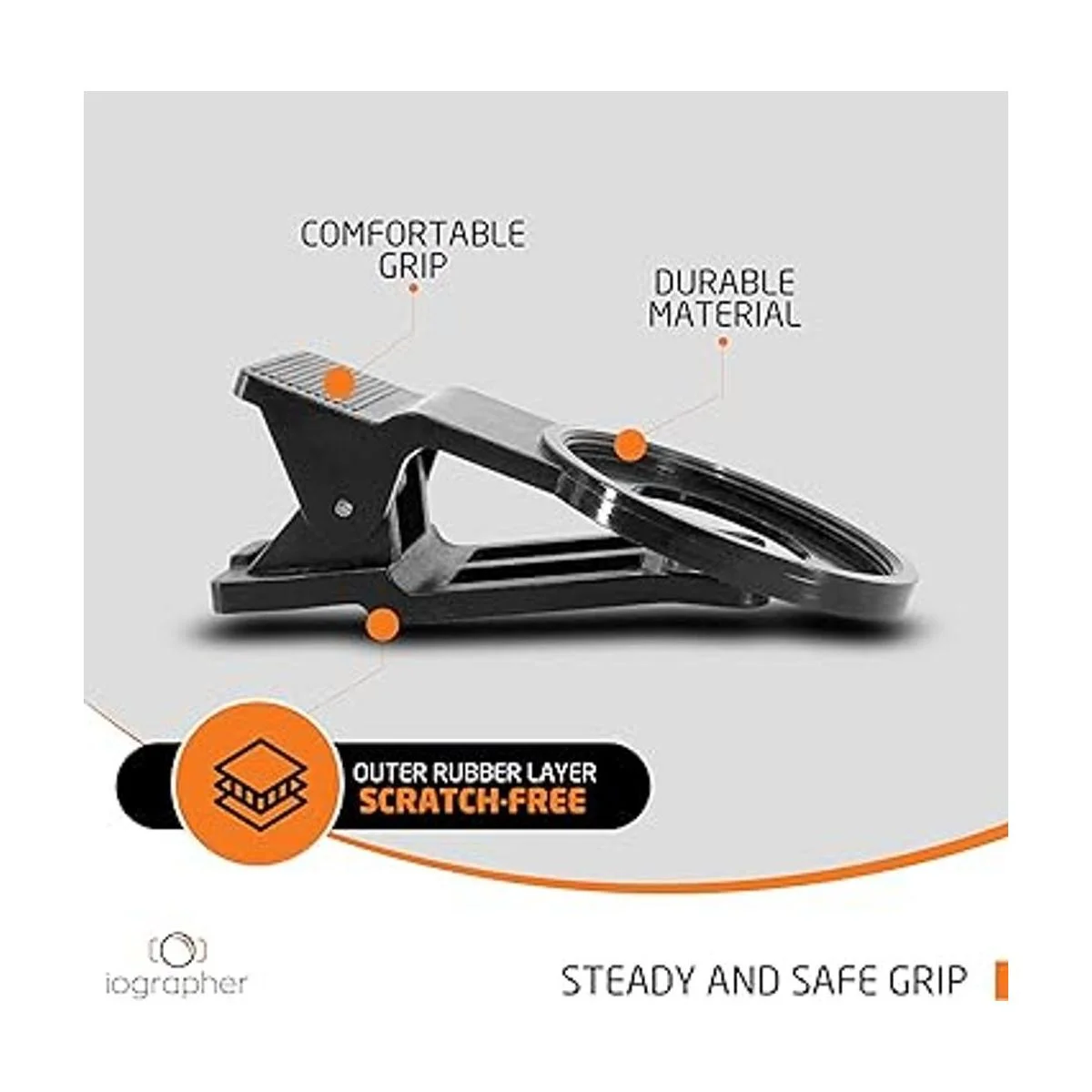 Agarre estable y seguro: nuestro accesorio de clip para lentes de smartphone tiene un revestimiento exterior de goma que protege tu teléfono de arañazos y proporciona un agarre seguro para mantener las lentes seguras y estables al tomar fotos o videos.