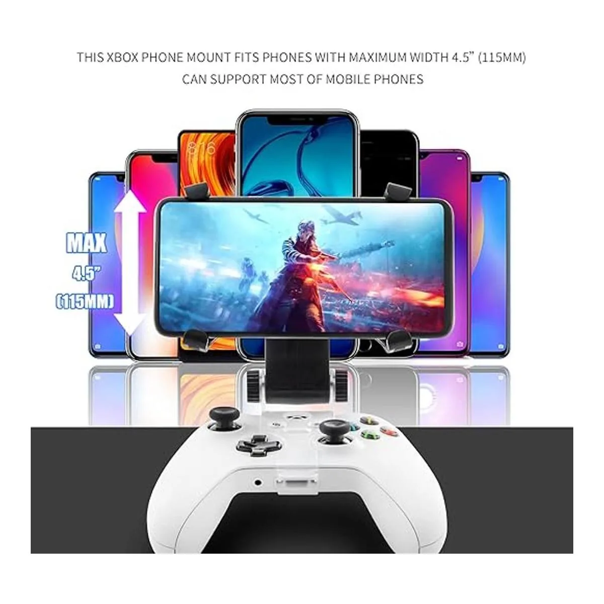 Soporte de teléfono para control Xbox: el clip de soporte para teléfono está diseñado a medida para su uso en tus controladores Xbox Series S/X, Xbox One y Xbox One S/X. Acolchado para evitar arañazos y diseñado para adaptarse a una gama de teléfonos.