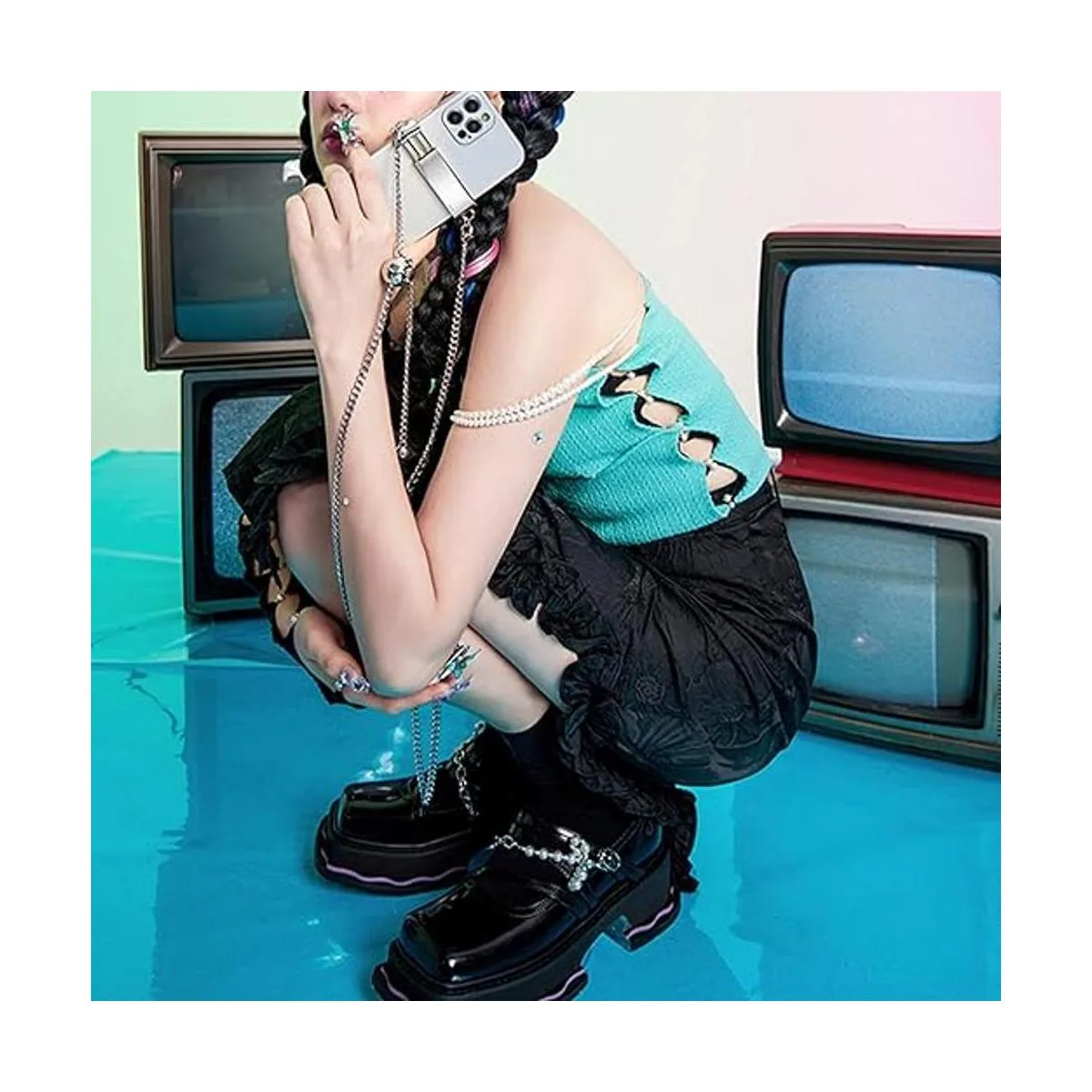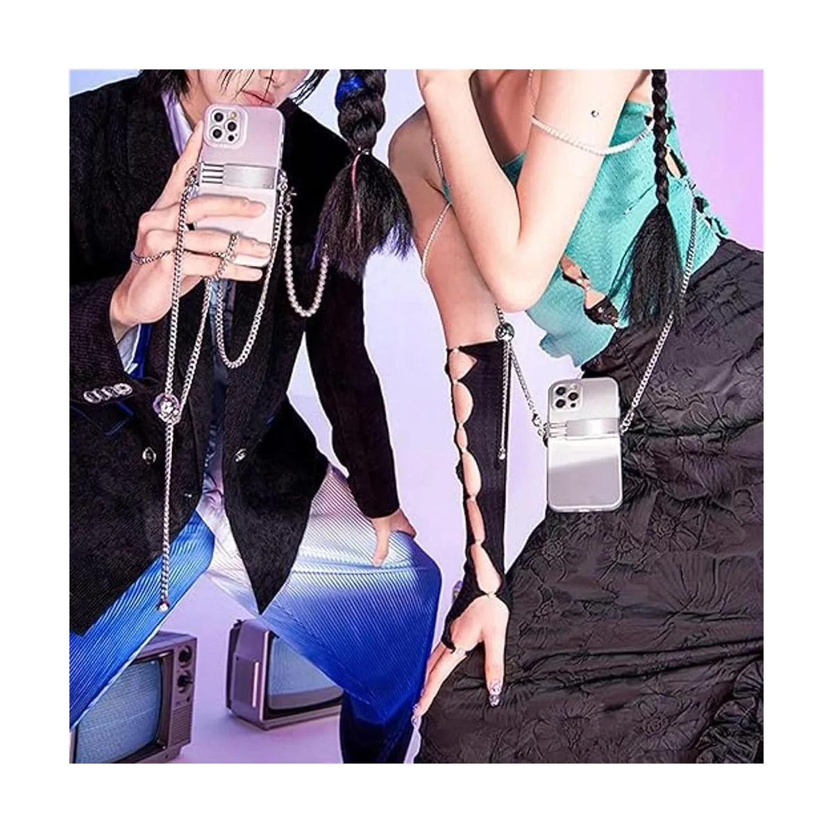 Clip portátil para teléfono, cadena cruzada ajustable, accesorios de cadena de teléfono, cadena de metal, funda de teléfono, cordón para teléfono, cuerda cruzada clips y cadenas de teléfono plateado blanco X03