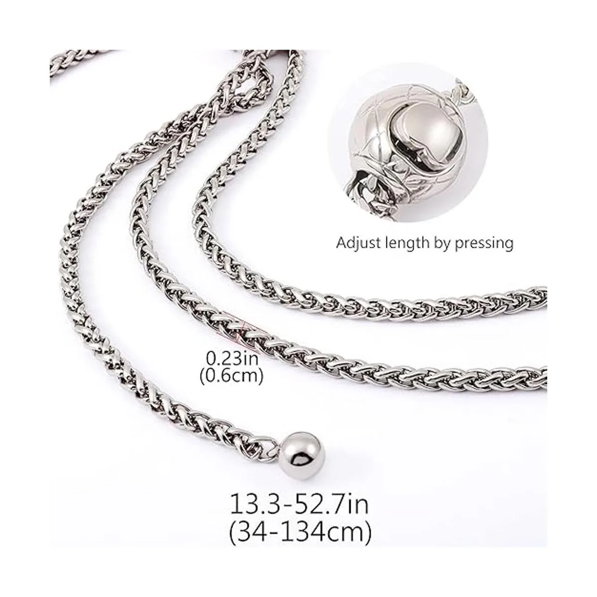 3. La cadena de metal BAIXUEJI en la bola pequeña se puede ajustar a la longitud que desees, se puede utilizar como una longitud de correa de hombro cruzada que se puede ajustar y quitar. Es perfecto para llevar contigo cuando sales de compras, al gimnasio, etc.