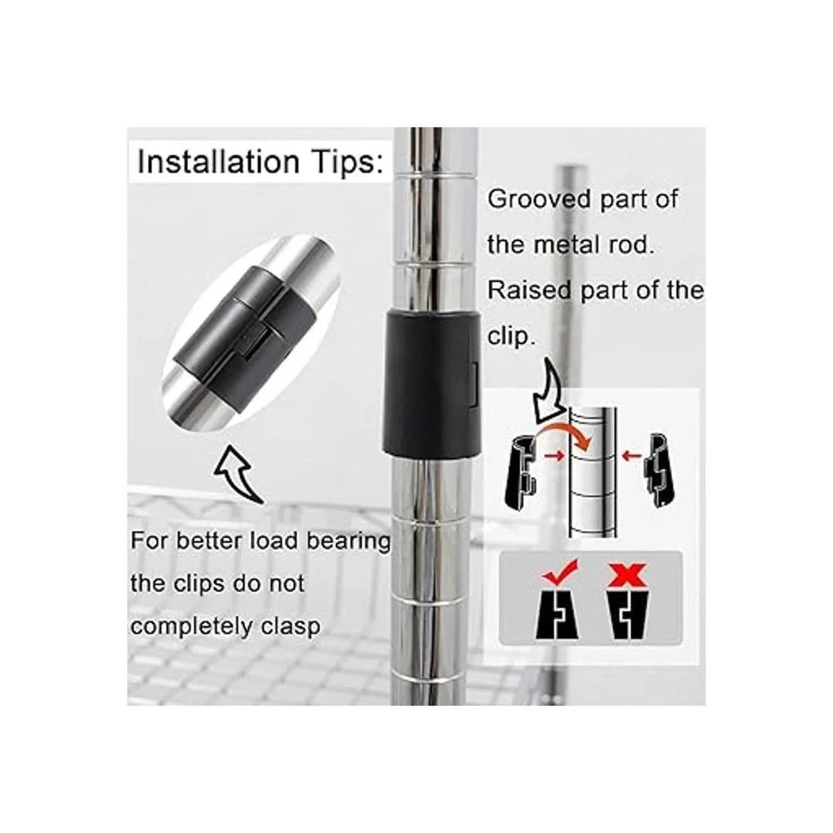Los clips de bloqueo de estantería de alambre están hechos de ABS de alta calidad plástico que garantiza una vida útil duradera y este juego es suficiente para 4 estantes