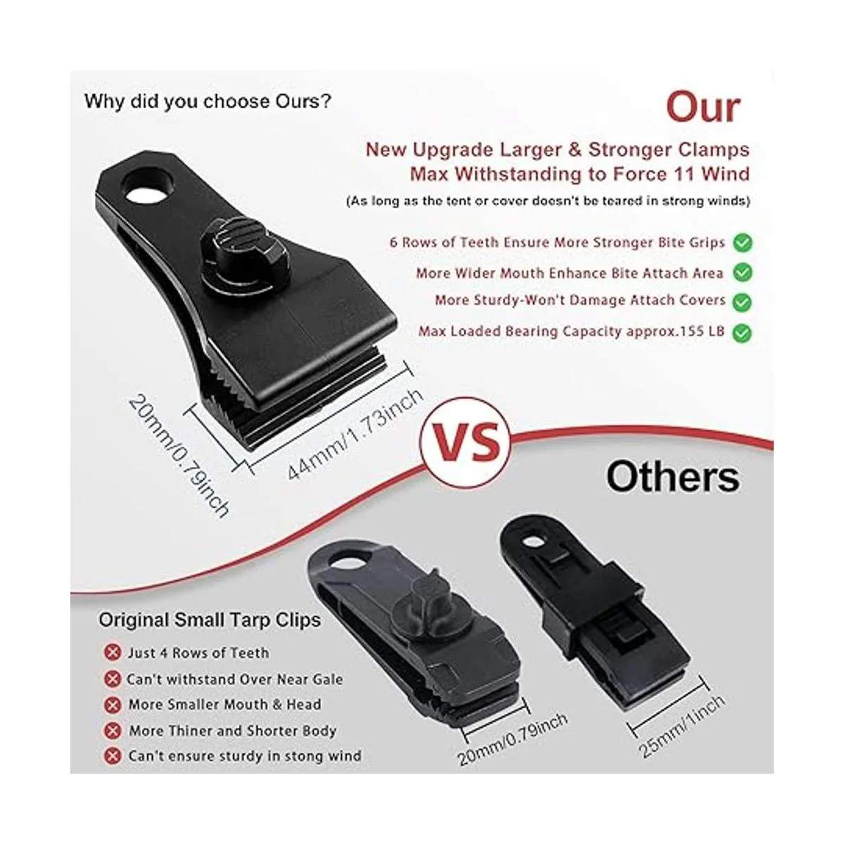 Función de clips de lona : las abrazaderas de lona resistentes de alta resistencia son ideales para sostener lona, toldo, cubierta de barco, clips de cubierta de transporte, clips de toldo de camping, refugios temporales, clips de amarre de lona, cubierta de bicicleta, cubierta de coche/camión, cubierta de pérgola, clips de lona de perrera, clips de cubierta de piscina, etc.