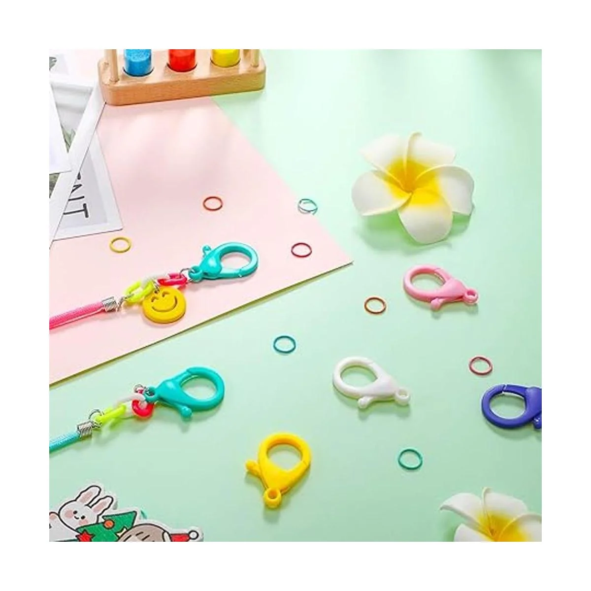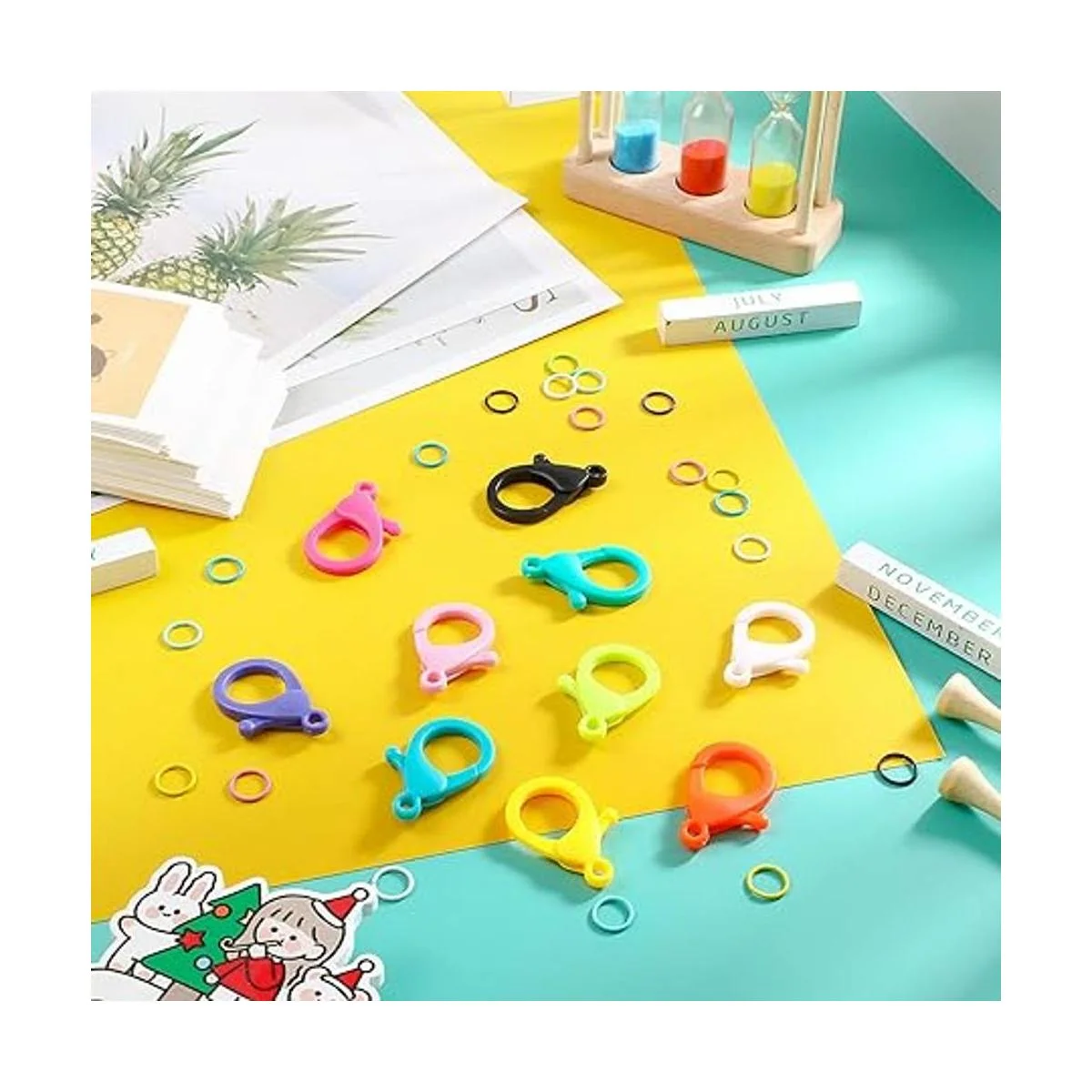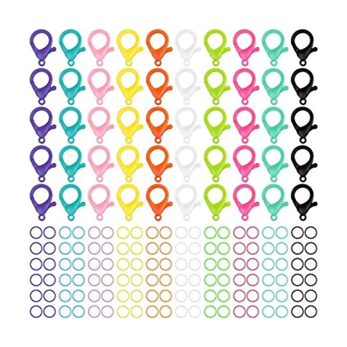 Clips de plástico duro multicolor, cierres de pinza de langosta y anillos de salto abiertos, bonitos ganchos de cordón para llavero, anillo de cadena de juguete, manualidades hechas a mano 100 piezas