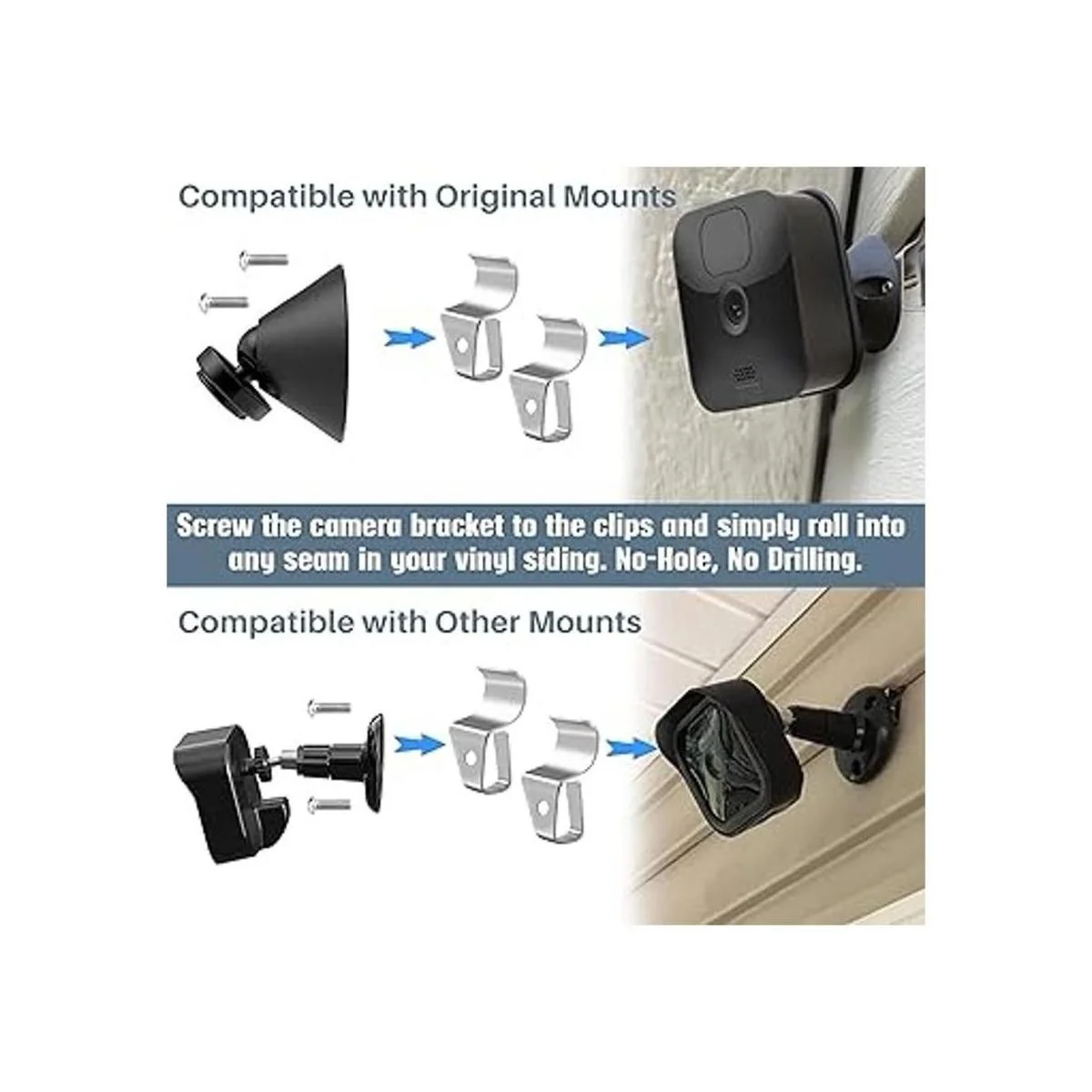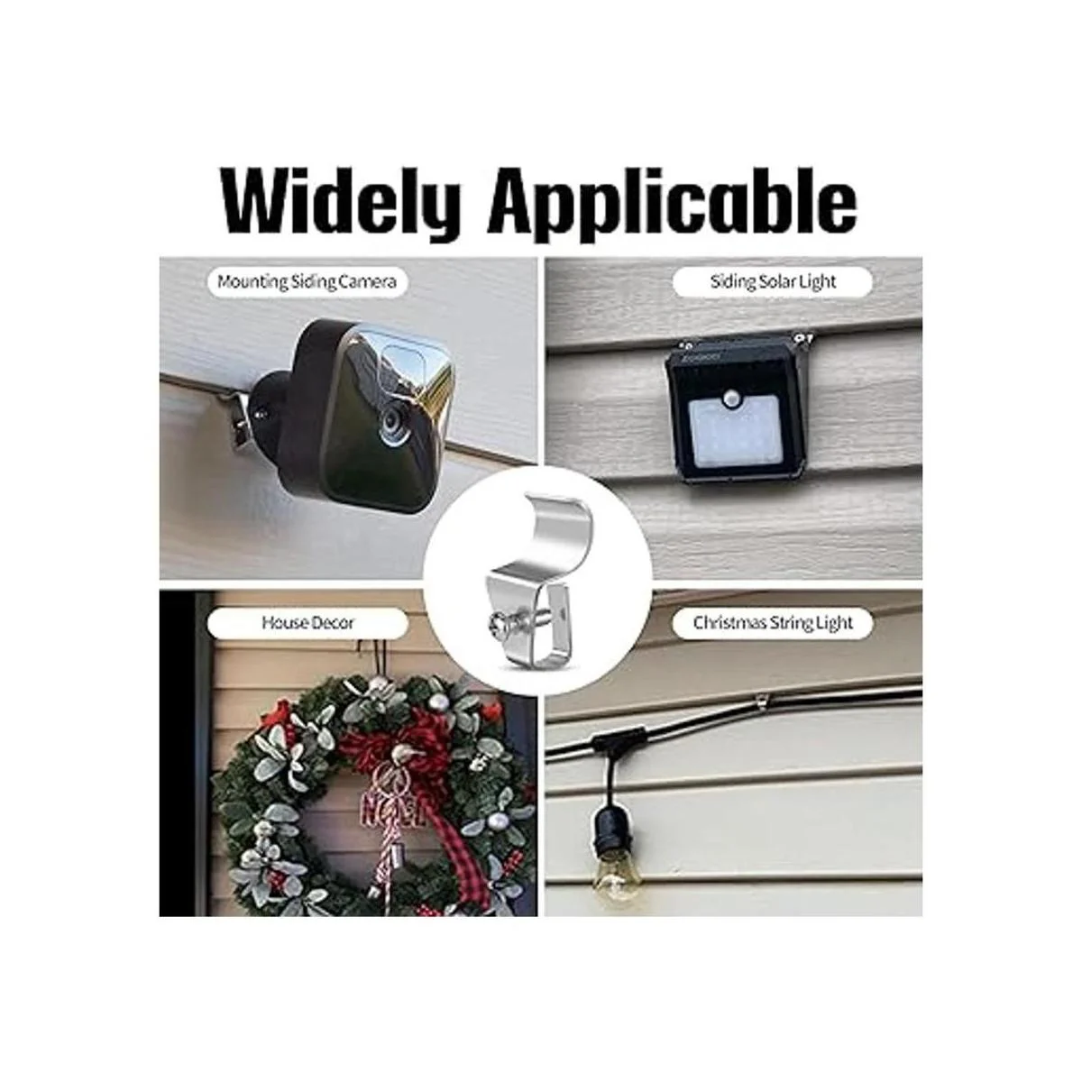 Ampliamente aplicable: estos clips de montaje de revestimiento de acero inoxidable son para albergar cámaras exteriores como Blink, Arlo, cámaras de anillo, etc., y para colgar coronas de Navidad, luces de cadena al aire libre, decoraciones exteriores de casa, plantas, luces de panel solar, etc.