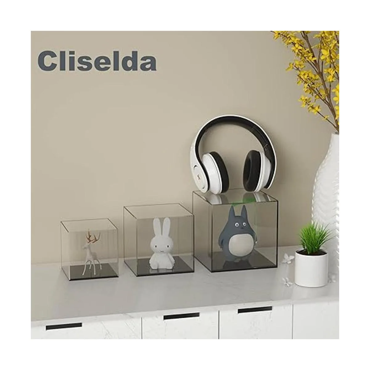 Cliselda vitrina acrílica transparente con base negra, caja organizadora de cubos, soporte elevador de protección a prueba de polvo para figuras de acción, juguetes coleccionables 6 x 6 x 6 pulgadas