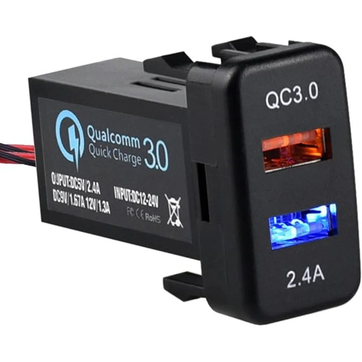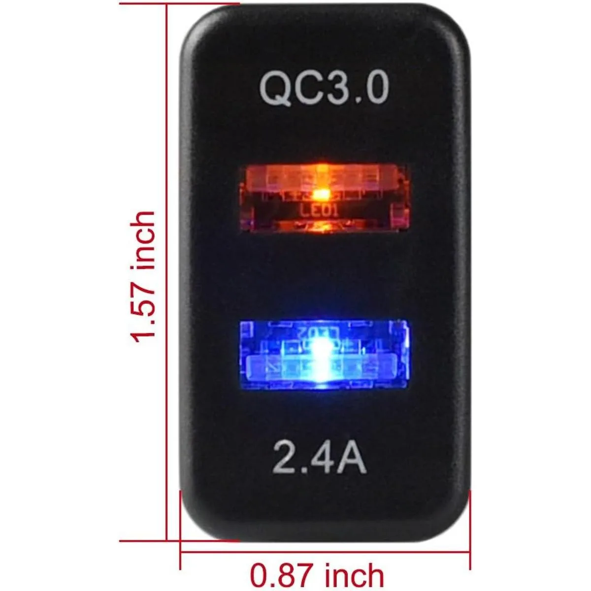Cllena Enchufe de cargador de puerto USB dual de carga rápida 3.0 y 2.4 A para Toyota