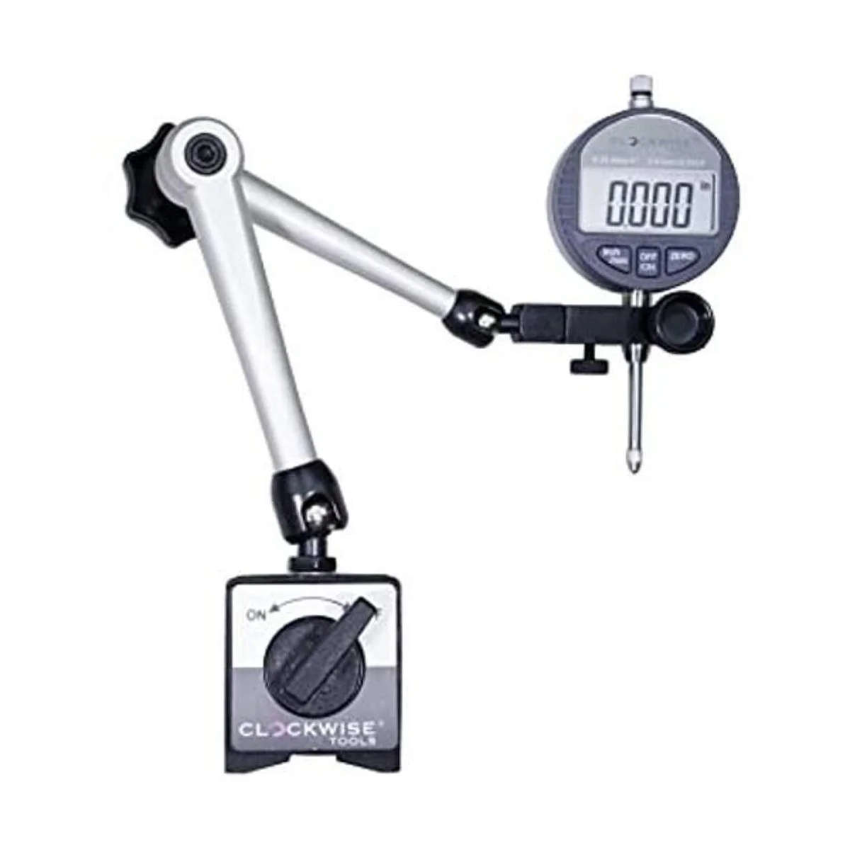 Clockwise Tools DIBR0105 Indicador electrónico digital y base magnética de 01 pulgada, 1.000 inconversión métrica, herramienta de medición de apagado automático