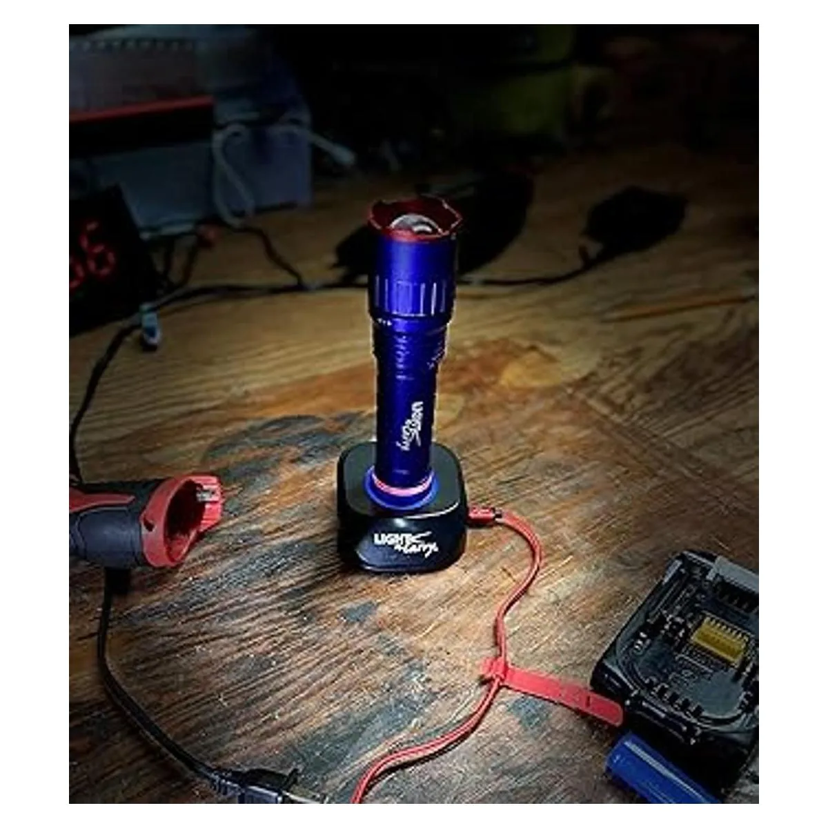 Componentes incluidos: 1 luz de antorcha LNC375, 1 cable USB trenzado, 1 base de carga inalámbrica, 1 adaptador de cargador de pared
