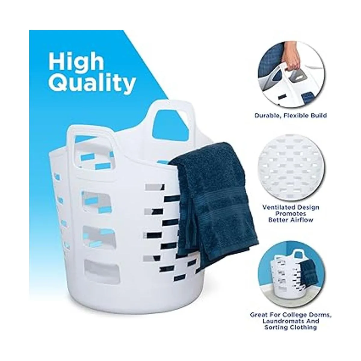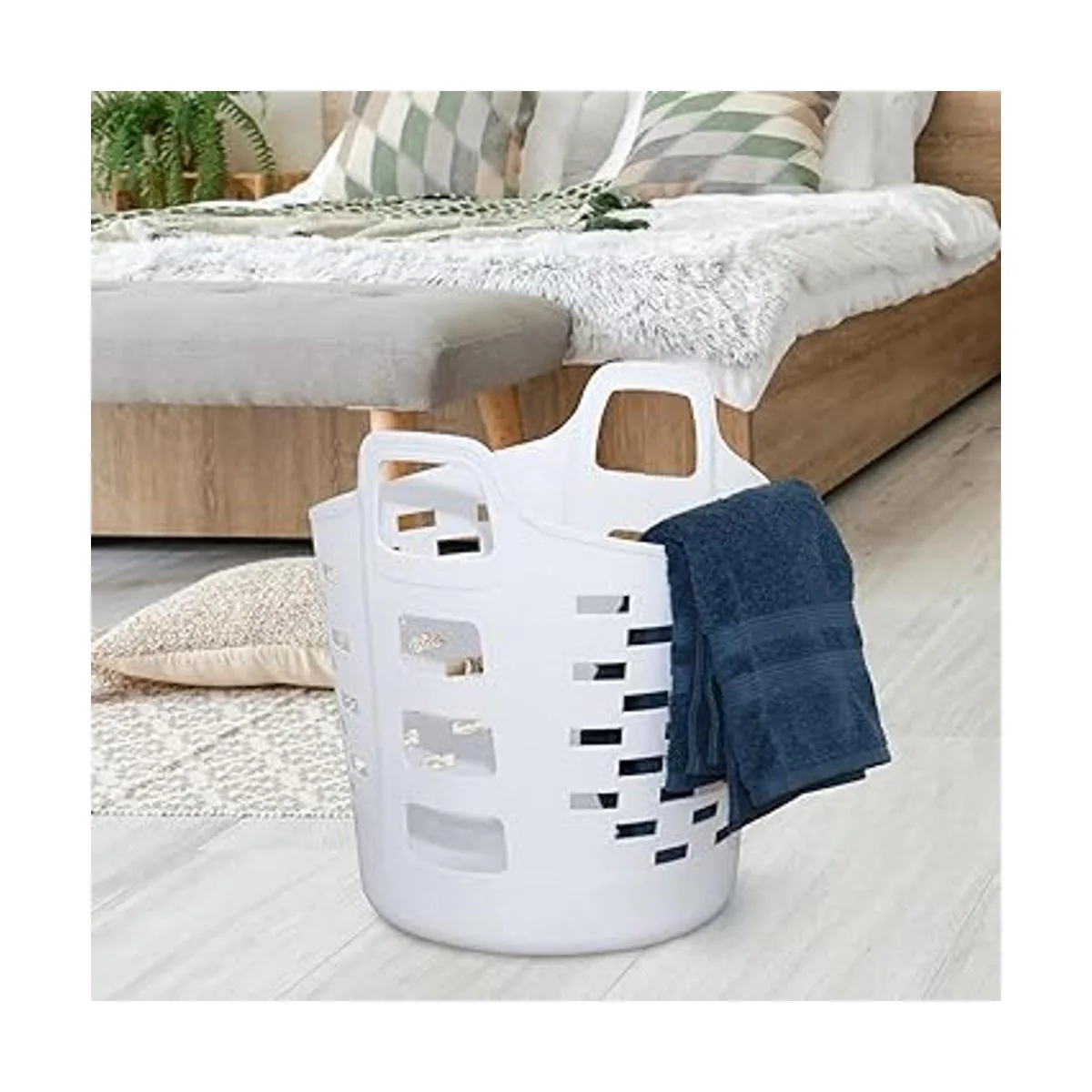 Cesta de lavandería flexible: la cesta de lavandería blanca está hecha de plástico suave y resistente. La moderna cesta de lavandería cuenta con una forma flexible y flexible que evita grietas.