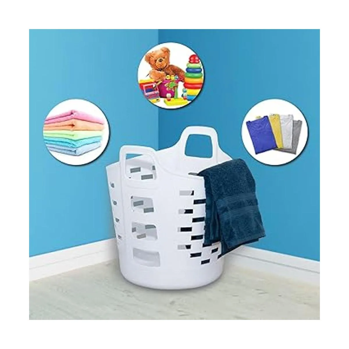 Cubo de lavandería versátil: no solo para ropa, este contenedor redondo de plástico es un gran organizador de lino y cesta de almacenamiento para armarios, baños y salas de juegos.